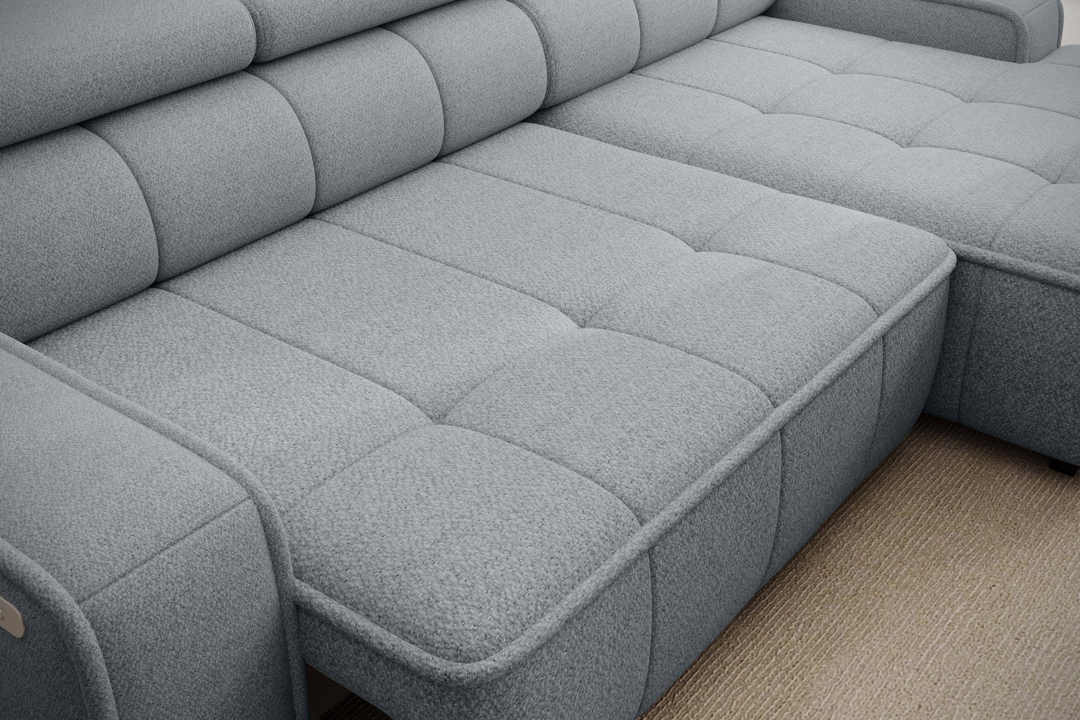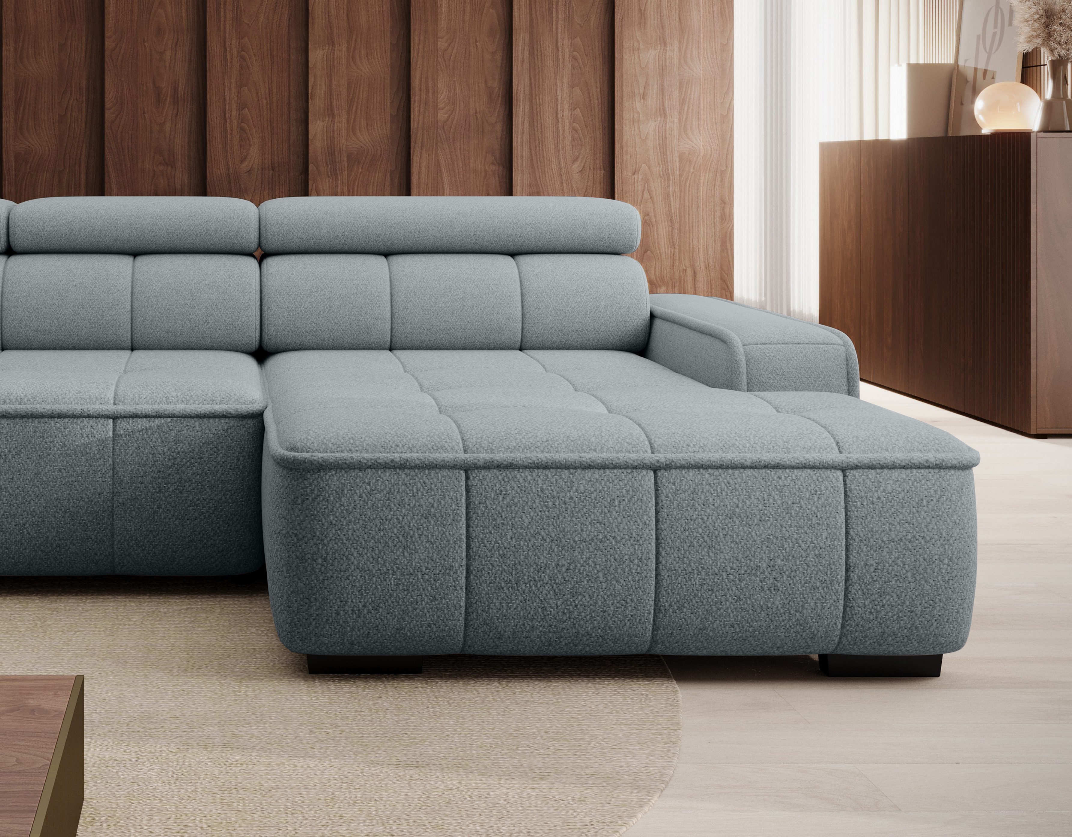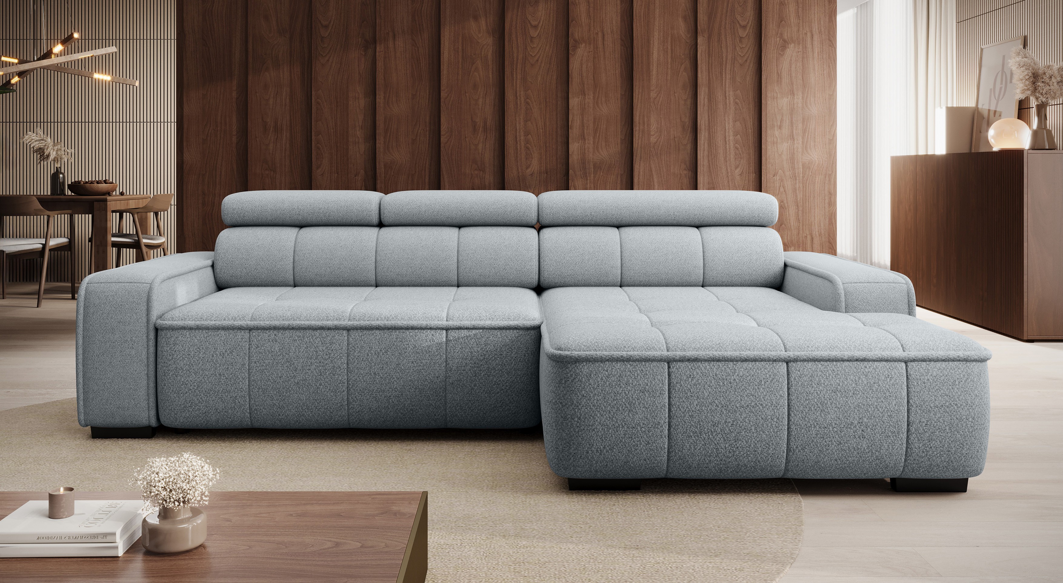 Dzięki elektrycznie regulowanej głębokości siedziska (0–27 cm) oraz regulowanym zagłówkom (funkcja RELAX), narożnik łatwo dostosujesz do swoich preferencji – zarówno podczas odpoczynku, jak i spotkań z bliskimi.