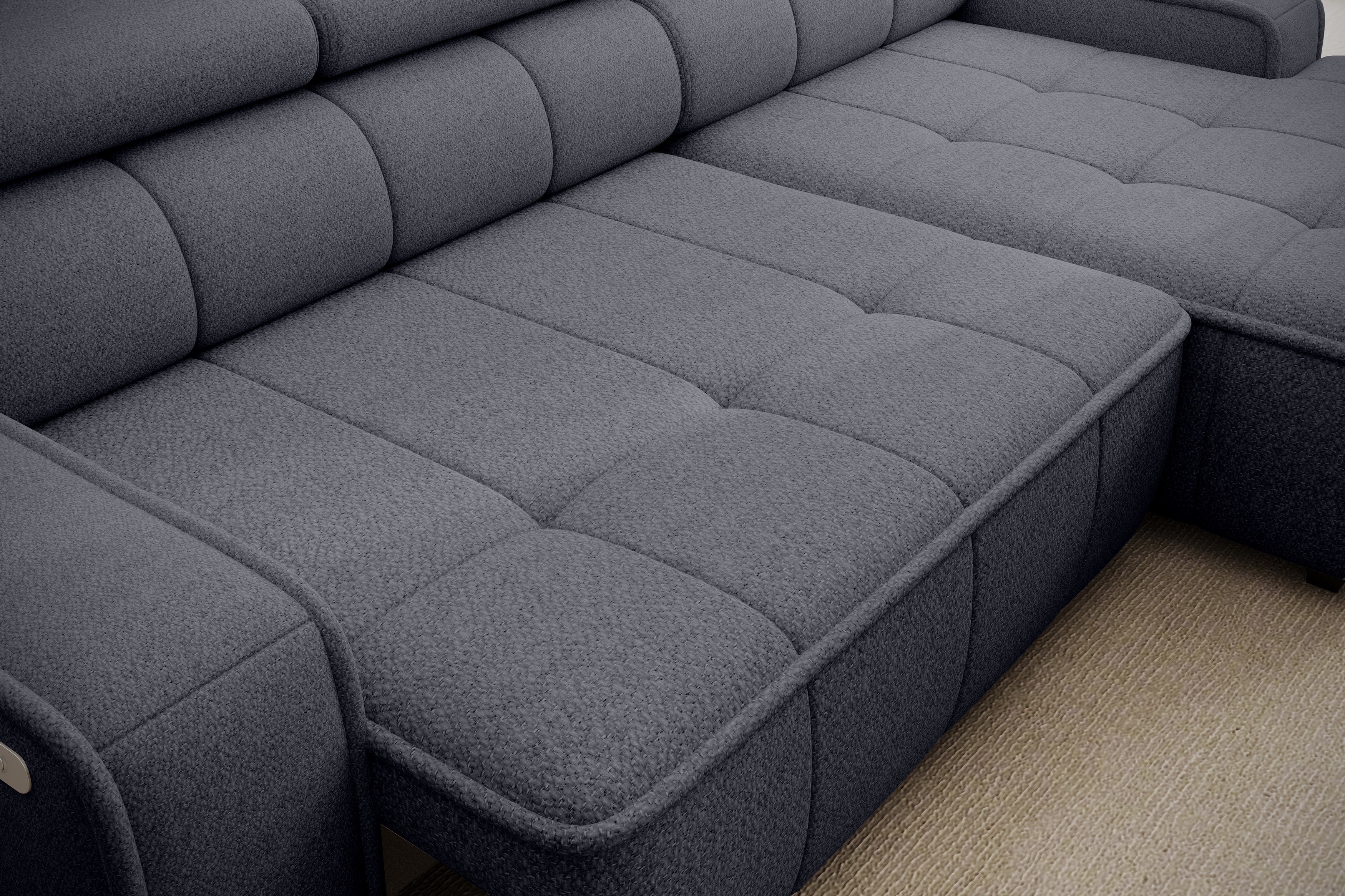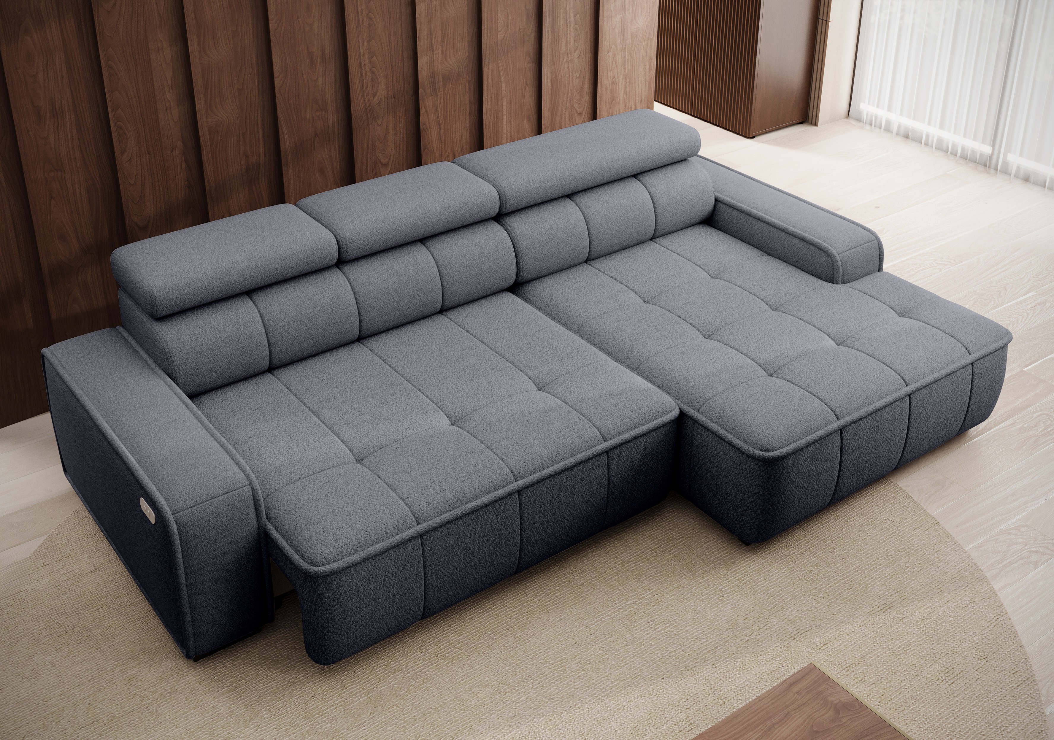 Dzięki elektrycznie regulowanej głębokości siedziska (0–27 cm) oraz regulowanym zagłówkom (funkcja RELAX), narożnik łatwo dostosujesz do swoich preferencji – zarówno podczas odpoczynku, jak i spotkań z bliskimi.