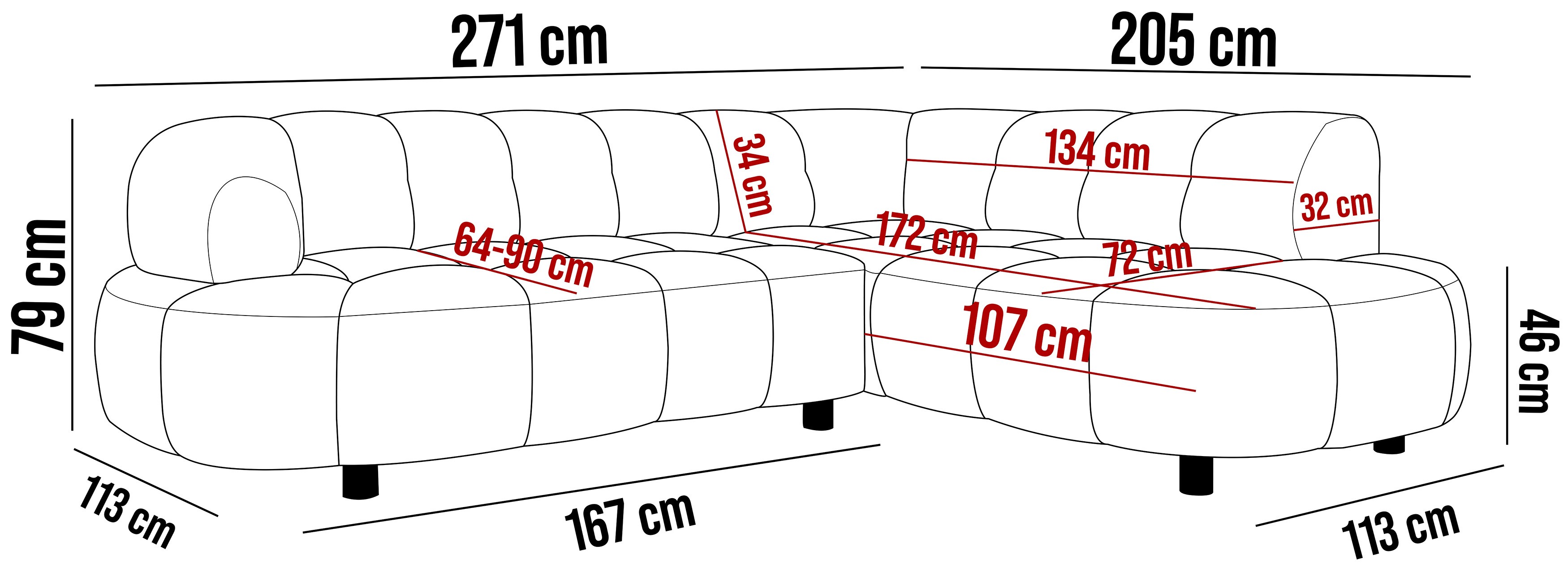 • Narożnik dostępny w wersji prawo- lub lewostronnej
