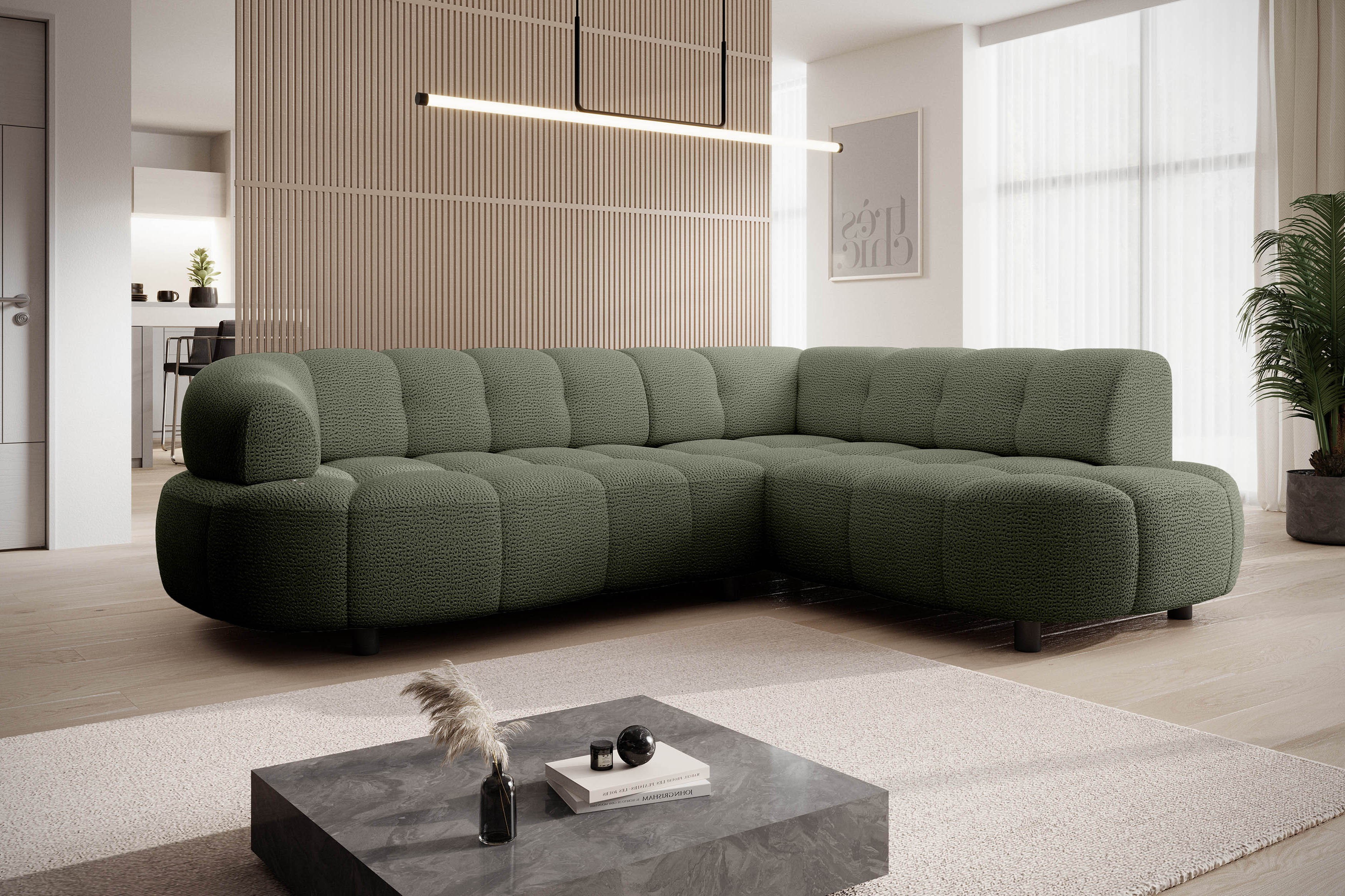 Dostępny w wersji prawo- i lewostronnej oraz w różnych wariantach tkanin. Skontaktuj się z nami, aby dobrać idealną konfigurację dla Twojego wnętrza.