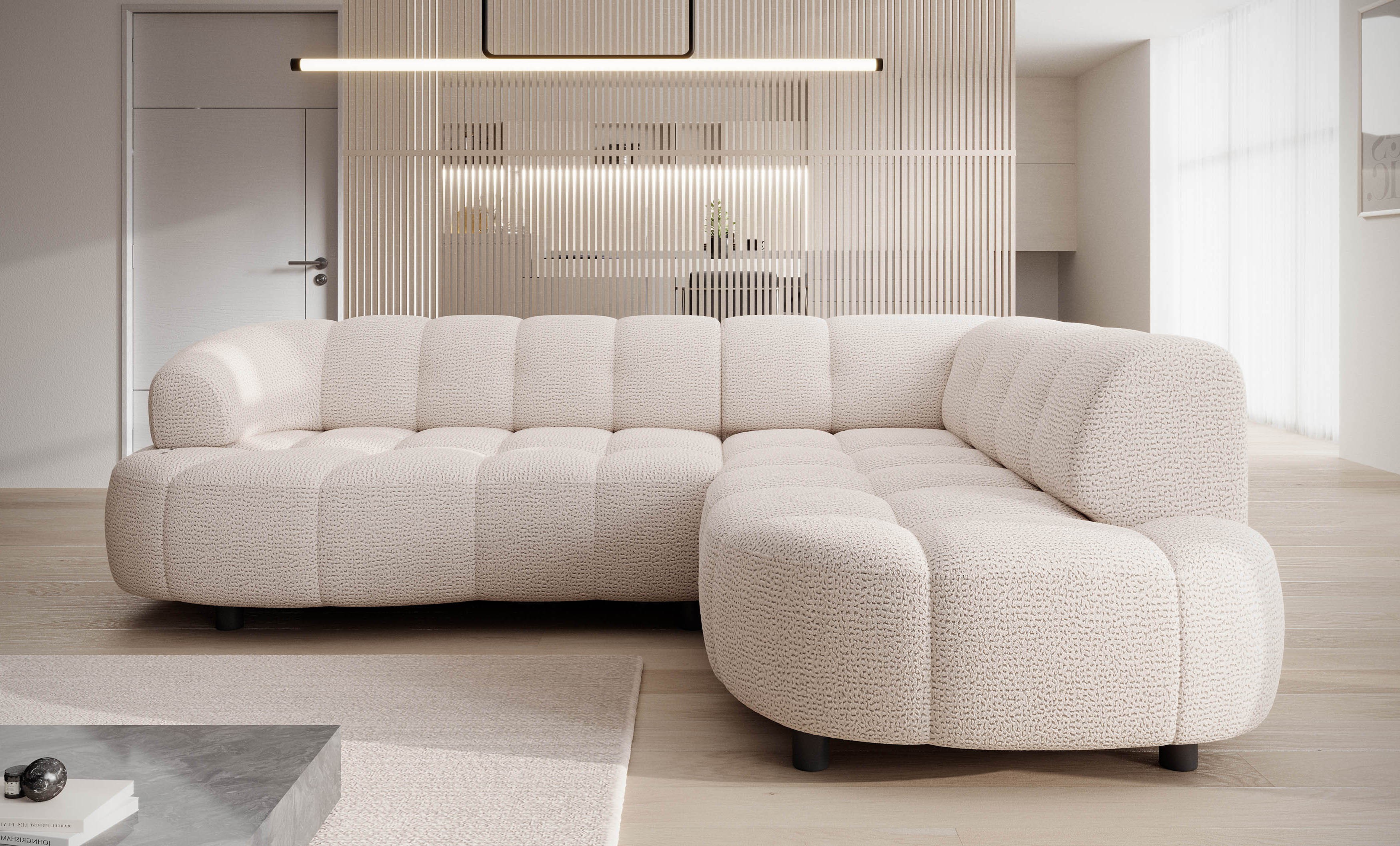 Dostępny w wersji prawo- i lewostronnej oraz w różnych wariantach tkanin. Skontaktuj się z nami, aby dobrać idealną konfigurację dla Twojego wnętrza.