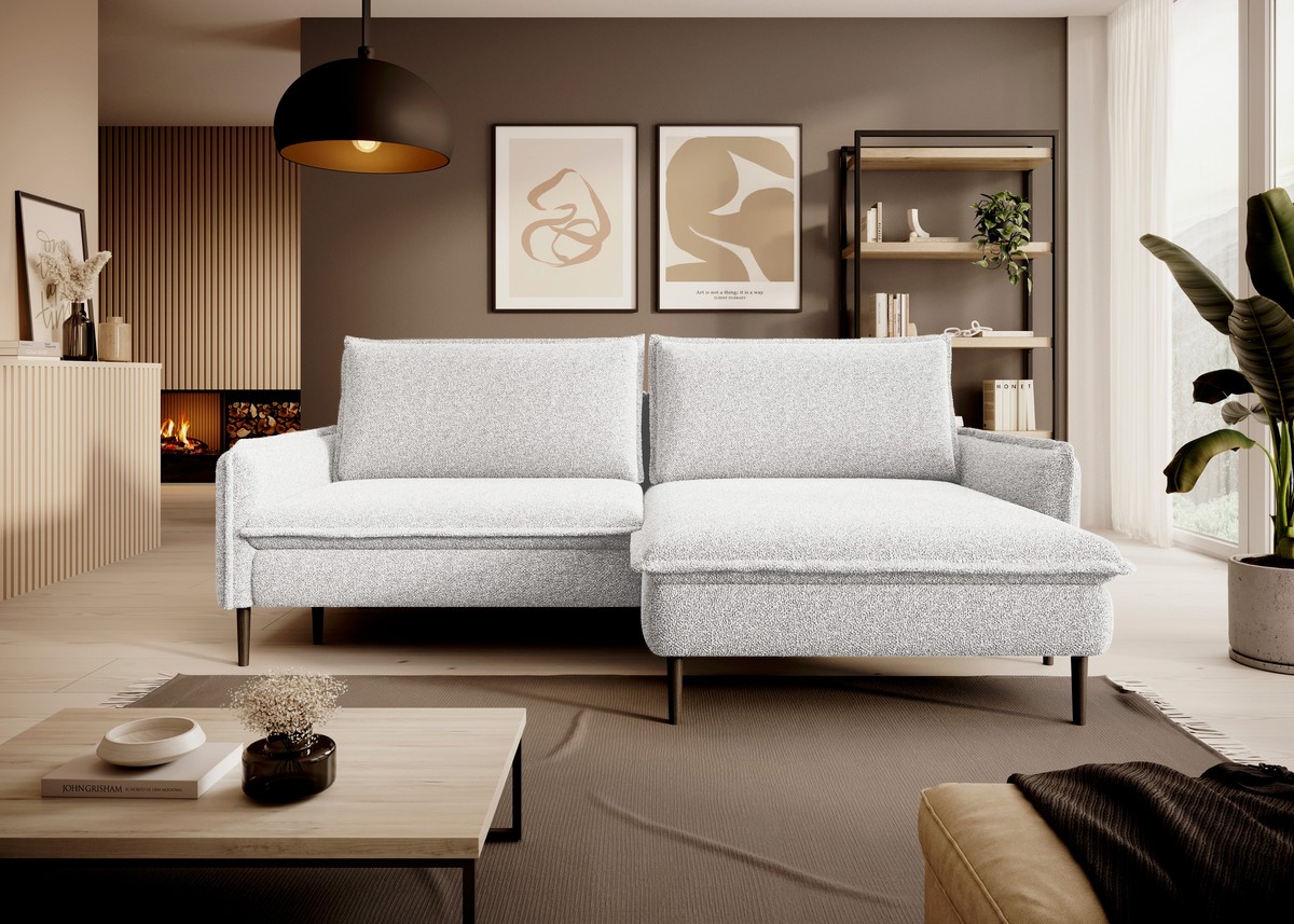 Dostępny w wielu tkaninach i kolorach, z możliwością wyboru strony narożnika: prawej lub lewej.