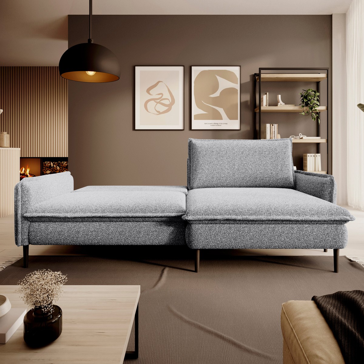 Narożnik GLOSSY z funkcją spania Prawostronny zestaw z poduszkami wolnostojący tkanina BUBBLE 01 WERSAL
