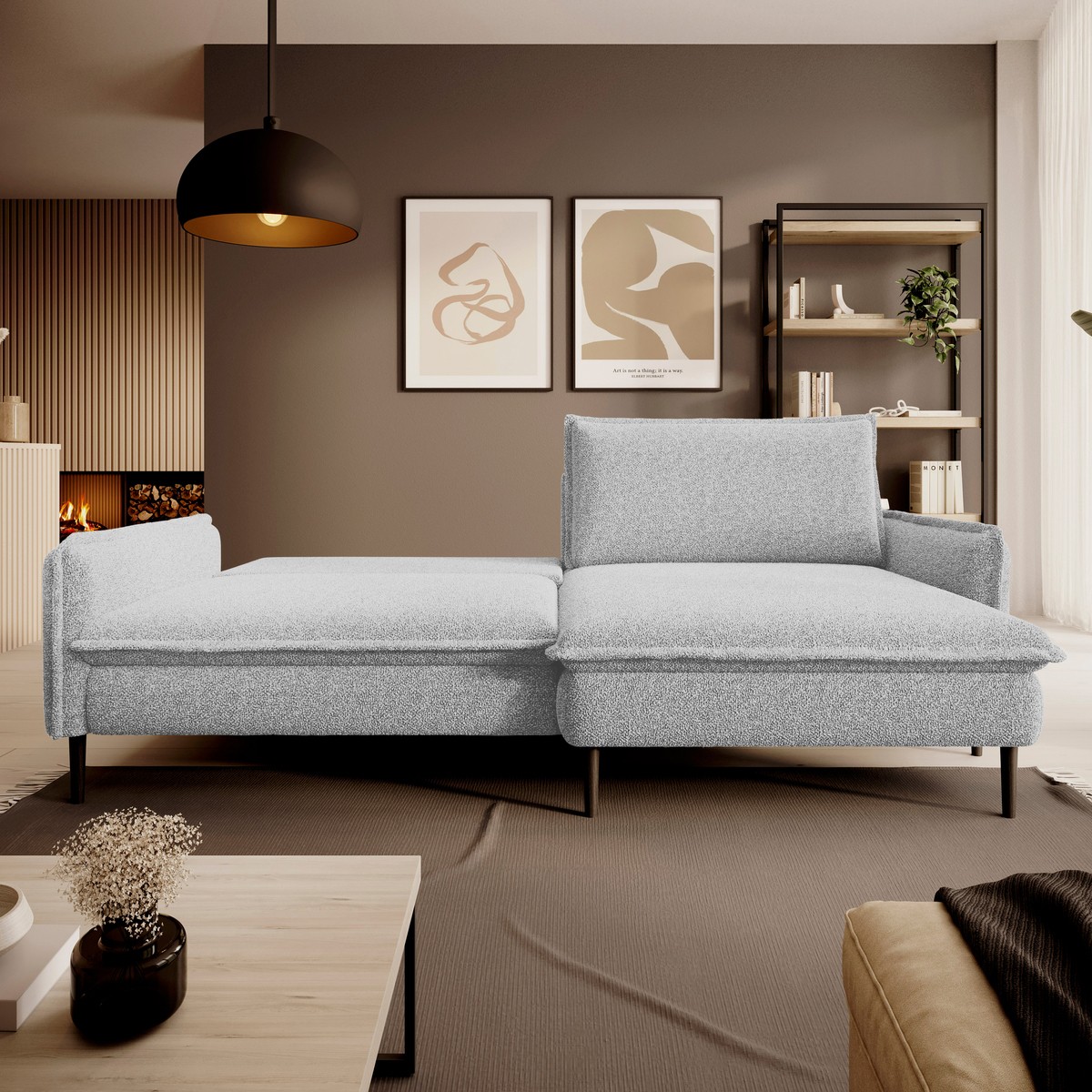 Narożnik GLOSSY z funkcją spania Prawostronny zestaw z poduszkami wolnostojący tkanina BUBBLE 07 WERSAL