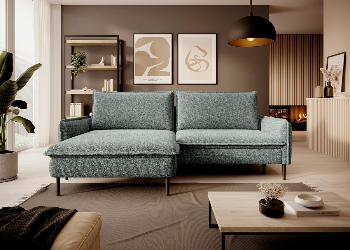 Narożnik GLOSSY Lewostronny z funkcją spania zestaw z poduszkami wolnostojący tkanina BUBBLE 13 WERSAL