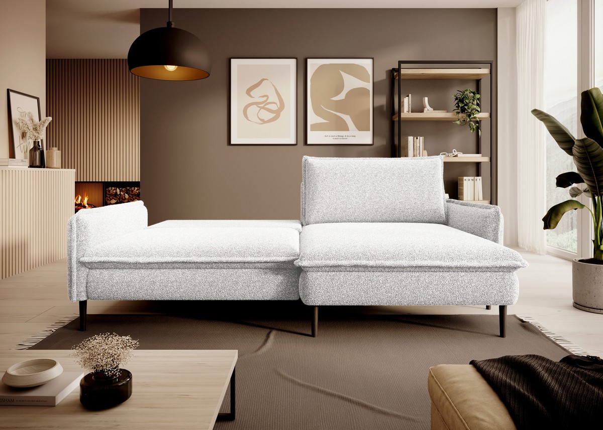 Narożnik GLOSSY Prawostronny z funkcją spania zestaw z poduszkami wolnostojący tkanina BUBBLE 01 WERSAL