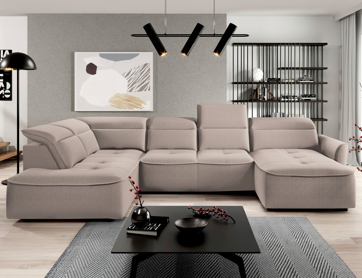 Nowoczesny narożnik Murillo XL to połączenie stylu, komfortu i nowoczesnych funkcji. Wykonany z wysokiej jakości materiałów, z dbałością o detale – eleganckie pikowania i subtelne przeszycia nadają mu ponadczasowy wygląd, który sprawdzi się w aranżacjach zarówno nowoczesnych, jak i klasycznych.