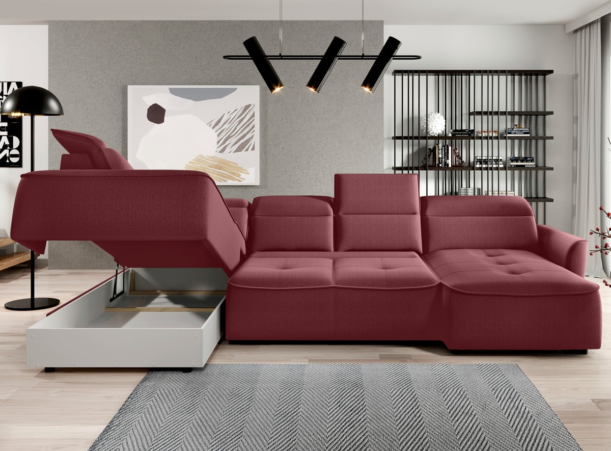 Nowoczesny narożnik Murillo XL to połączenie stylu, komfortu i nowoczesnych funkcji. Wykonany z wysokiej jakości materiałów, z dbałością o detale – eleganckie pikowania i subtelne przeszycia nadają mu ponadczasowy wygląd, który sprawdzi się w aranżacjach zarówno nowoczesnych, jak i klasycznych.