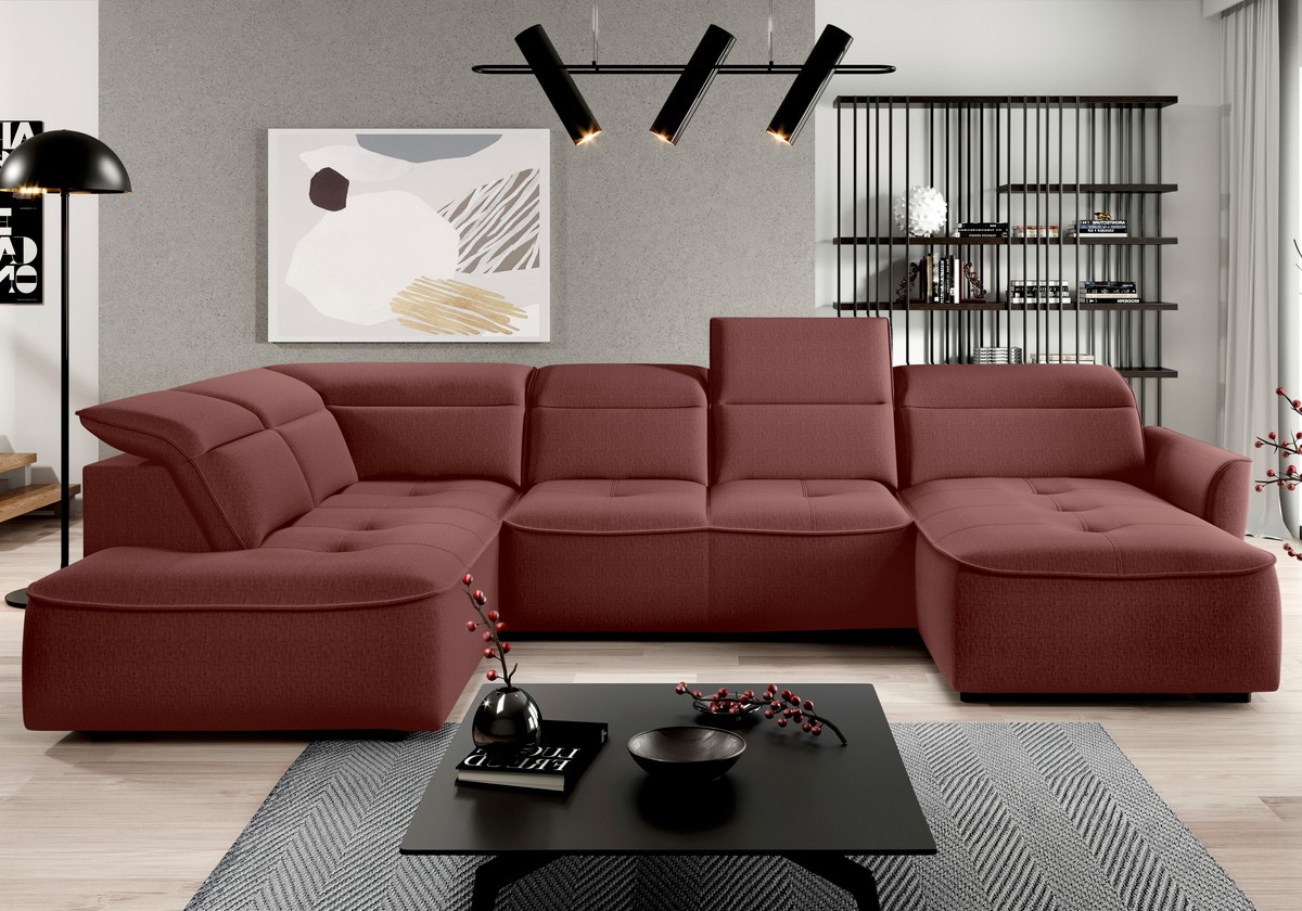Nowoczesny narożnik Murillo XL to połączenie stylu, komfortu i nowoczesnych funkcji. Wykonany z wysokiej jakości materiałów, z dbałością o detale – eleganckie pikowania i subtelne przeszycia nadają mu ponadczasowy wygląd, który sprawdzi się w aranżacjach zarówno nowoczesnych, jak i klasycznych.