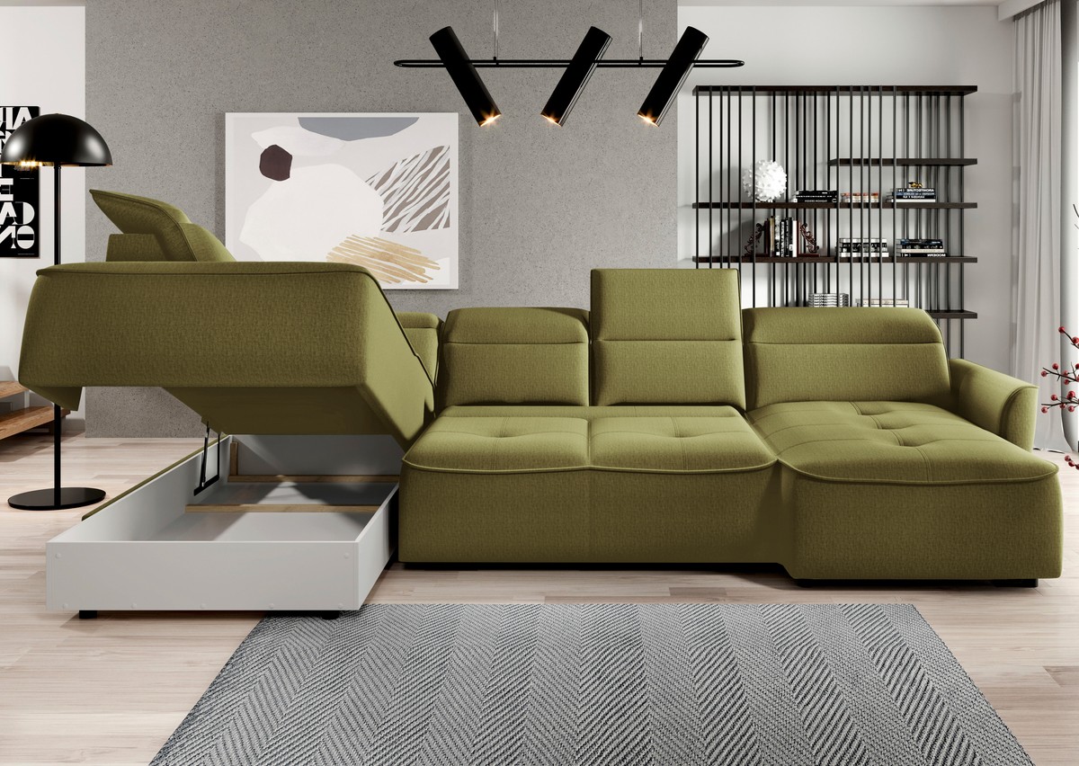 Nowoczesny narożnik Murillo XL to połączenie stylu, komfortu i nowoczesnych funkcji. Wykonany z wysokiej jakości materiałów, z dbałością o detale – eleganckie pikowania i subtelne przeszycia nadają mu ponadczasowy wygląd, który sprawdzi się w aranżacjach zarówno nowoczesnych, jak i klasycznych.