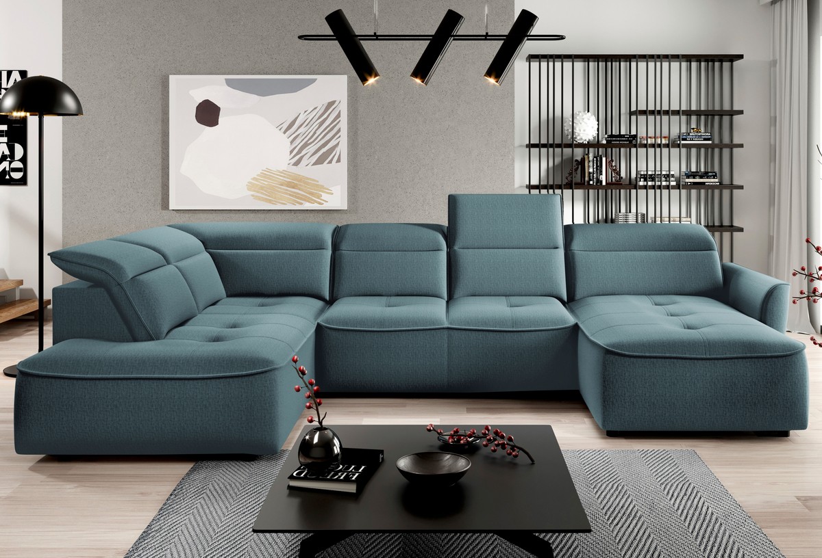 Nowoczesny narożnik Murillo XL to połączenie stylu, komfortu i nowoczesnych funkcji. Wykonany z wysokiej jakości materiałów, z dbałością o detale – eleganckie pikowania i subtelne przeszycia nadają mu ponadczasowy wygląd, który sprawdzi się w aranżacjach zarówno nowoczesnych, jak i klasycznych.