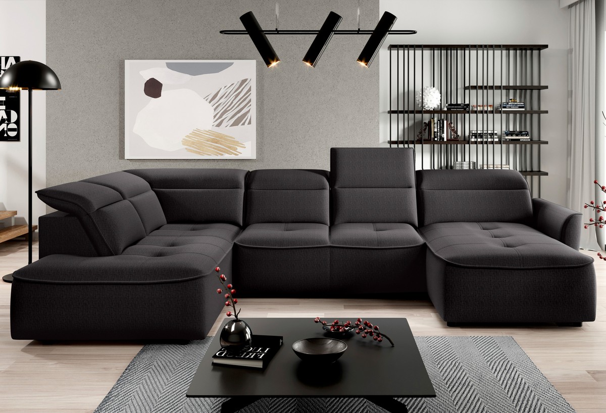 Nowoczesny narożnik Murillo XL to połączenie stylu, komfortu i nowoczesnych funkcji. Wykonany z wysokiej jakości materiałów, z dbałością o detale – eleganckie pikowania i subtelne przeszycia nadają mu ponadczasowy wygląd, który sprawdzi się w aranżacjach zarówno nowoczesnych, jak i klasycznych.