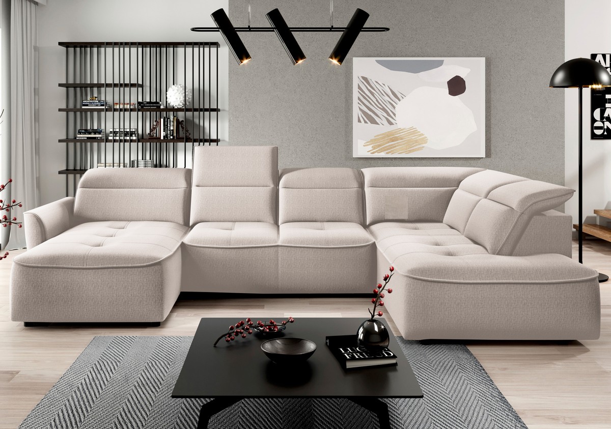 Nowoczesny narożnik Murillo XL to połączenie stylu, komfortu i nowoczesnych funkcji. Wykonany z wysokiej jakości materiałów, z dbałością o detale – eleganckie pikowania i subtelne przeszycia nadają mu ponadczasowy wygląd, który sprawdzi się w aranżacjach zarówno nowoczesnych, jak i klasycznych.