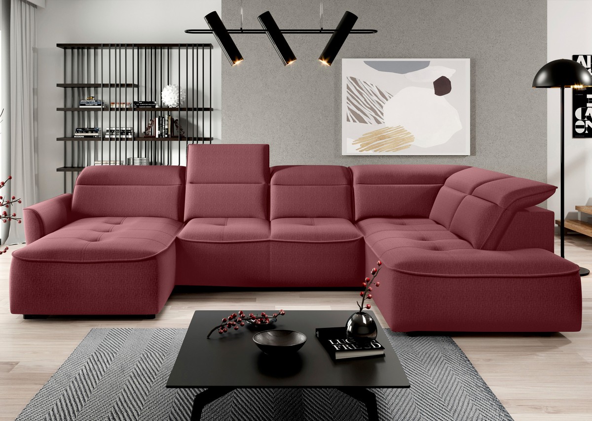 Nowoczesny narożnik Murillo XL to połączenie stylu, komfortu i nowoczesnych funkcji. Wykonany z wysokiej jakości materiałów, z dbałością o detale – eleganckie pikowania i subtelne przeszycia nadają mu ponadczasowy wygląd, który sprawdzi się w aranżacjach zarówno nowoczesnych, jak i klasycznych.