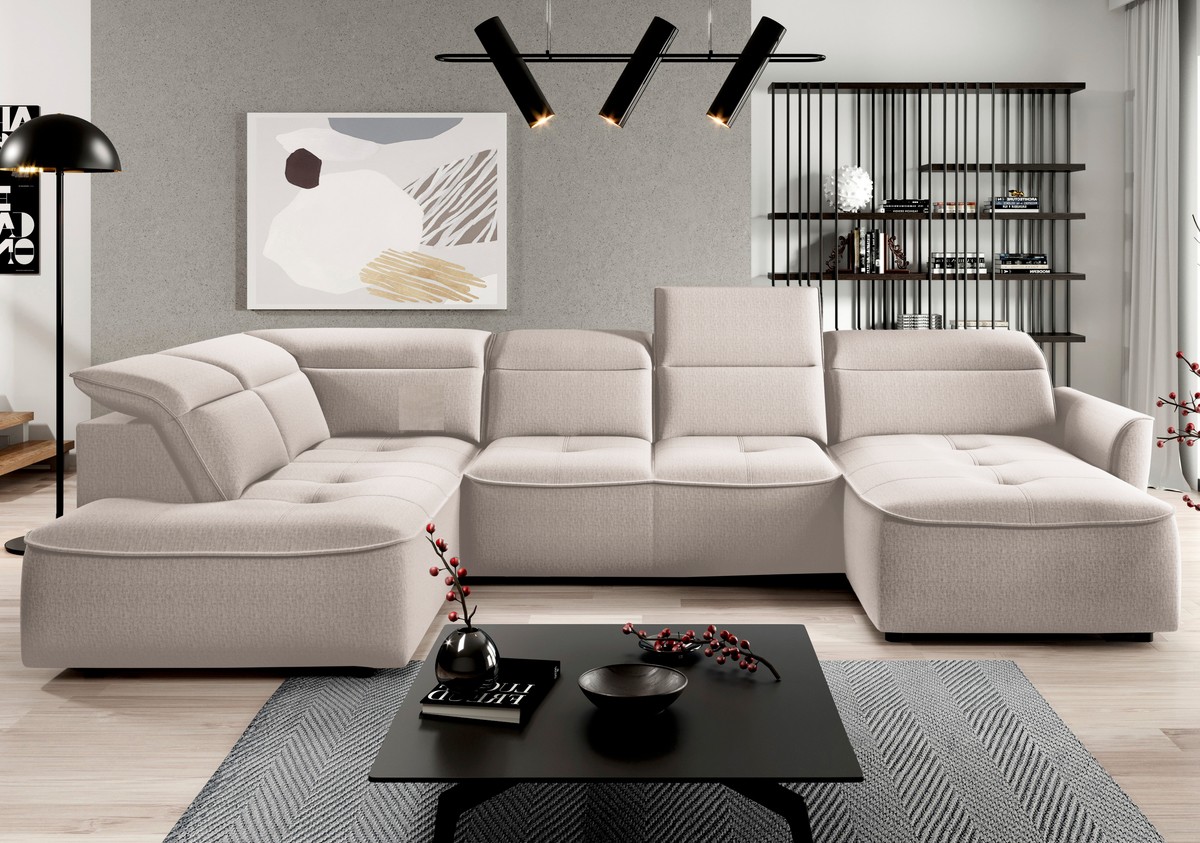 Nowoczesny narożnik Murillo XL to połączenie stylu, komfortu i nowoczesnych funkcji. Wykonany z wysokiej jakości materiałów, z dbałością o detale – eleganckie pikowania i subtelne przeszycia nadają mu ponadczasowy wygląd, który sprawdzi się w aranżacjach zarówno nowoczesnych, jak i klasycznych.