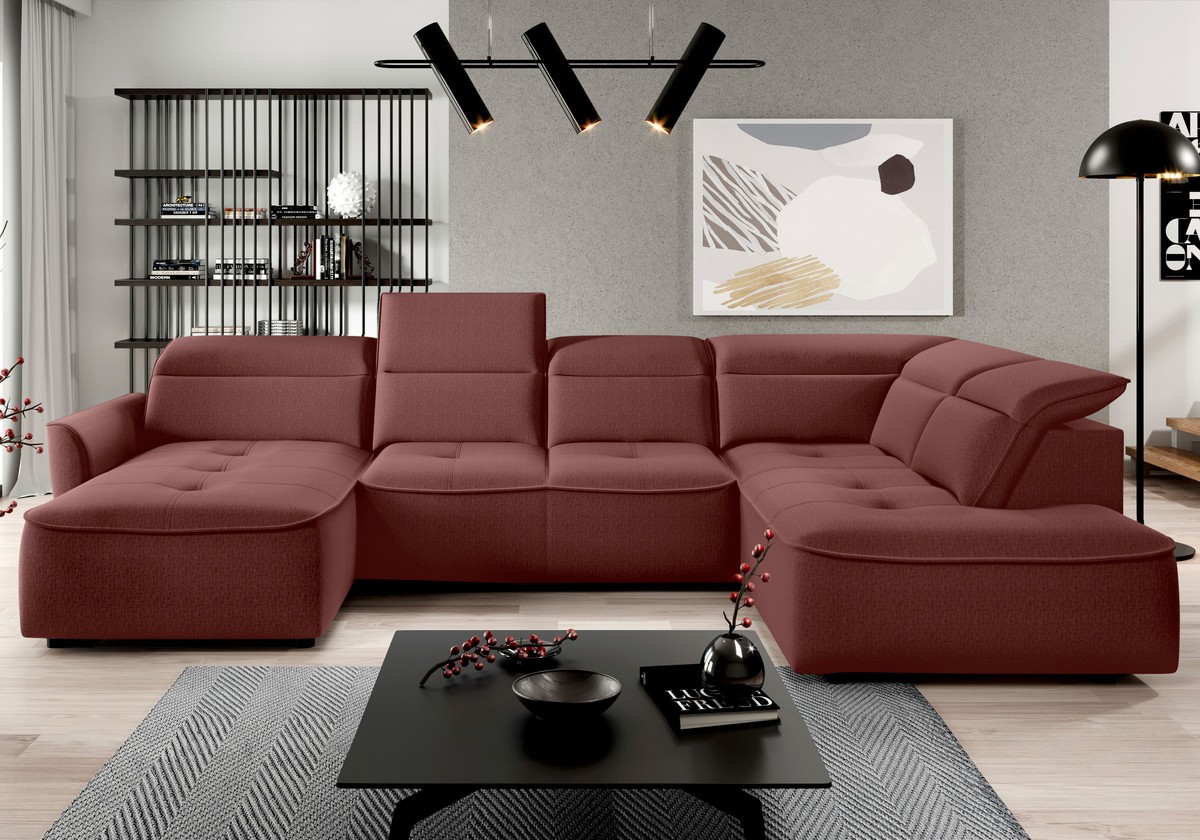 Nowoczesny narożnik Murillo XL to połączenie stylu, komfortu i nowoczesnych funkcji. Wykonany z wysokiej jakości materiałów, z dbałością o detale – eleganckie pikowania i subtelne przeszycia nadają mu ponadczasowy wygląd, który sprawdzi się w aranżacjach zarówno nowoczesnych, jak i klasycznych.