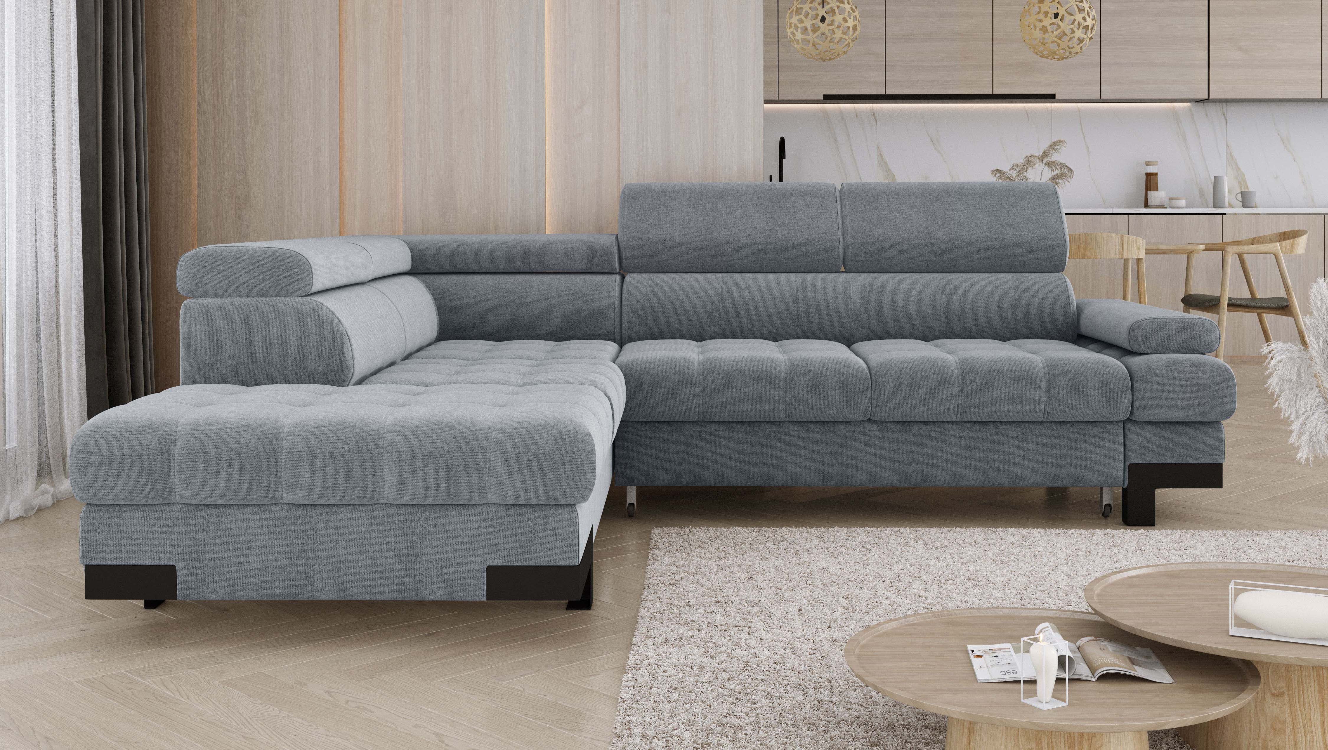 Narożnik SELVA L Lewostronny z funkcją spania i pojemnikiem AUSTIN 18 Jasny Szary WERSAL