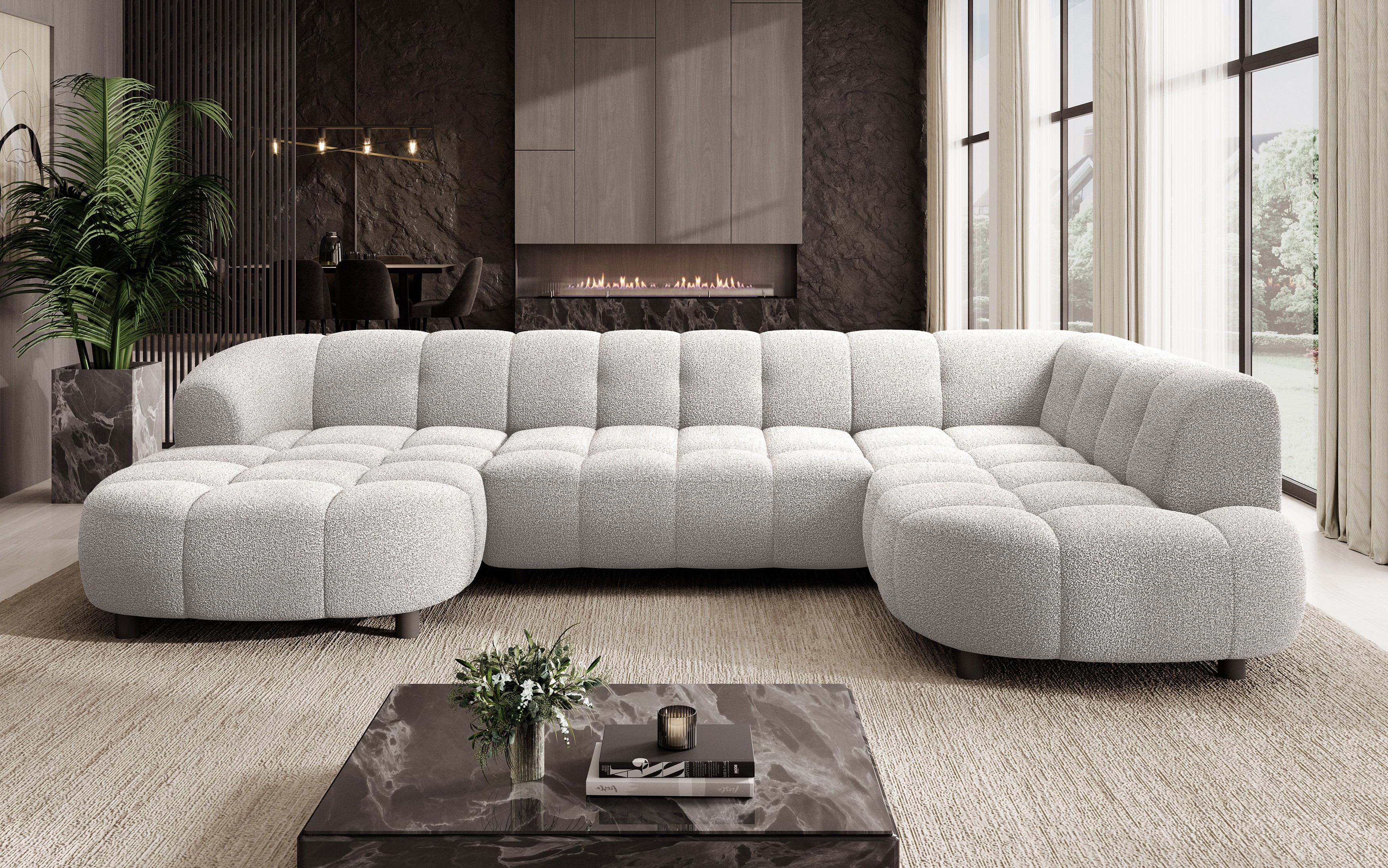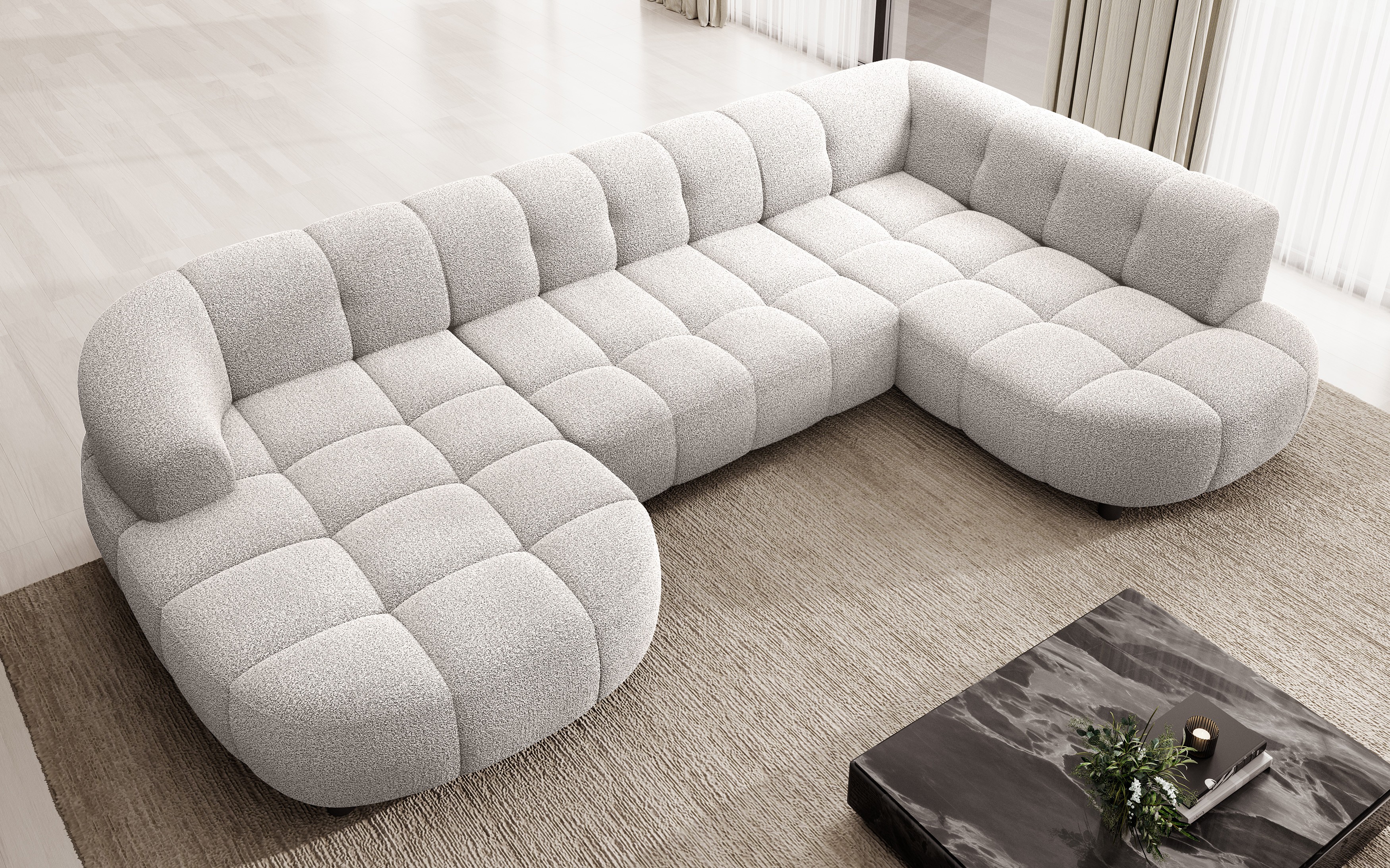 Dopracowany w najdrobniejszych szczegółach, wzbogacony o delikatne przeszycia i wciągi, wyposażony w różnej wielkości poduszki, sprawi wrażenie luksusu w Twoim domu.