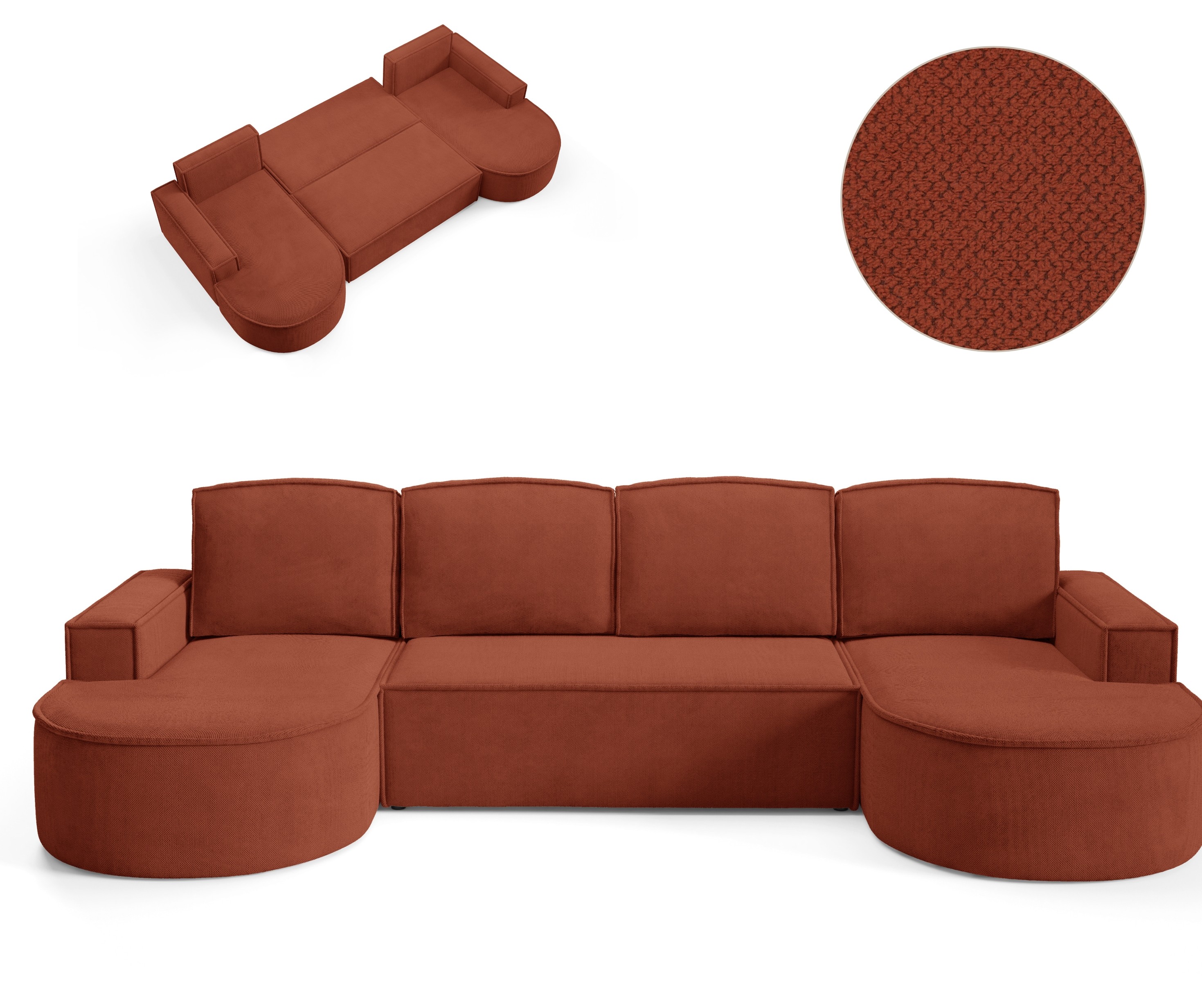 Narożnik MOLLY XL wolnostojący układ U z funkcją spania w tkaninie Abriamo 04 DomoHome