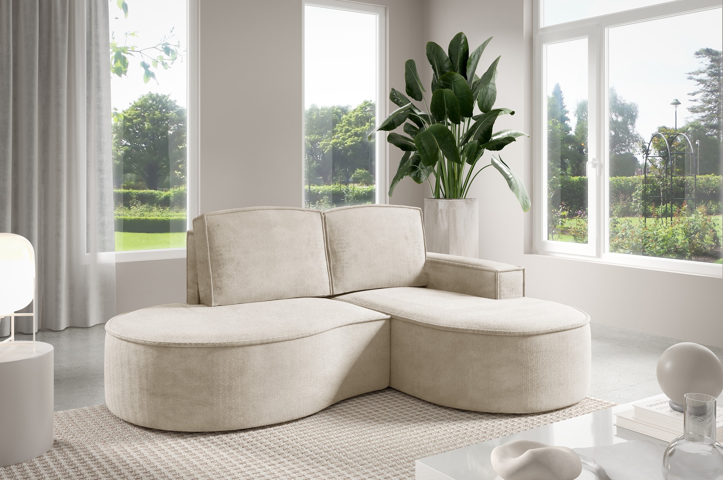 Narożnik MOLLY Prawostronny z funkcją spania, wolnostojący tkanina CURIO 09 Beżowy