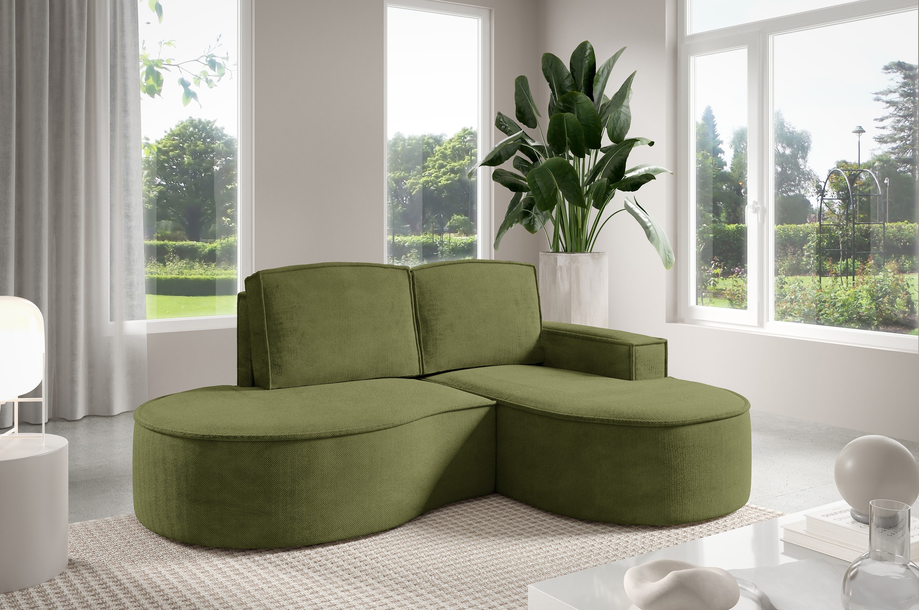 Narożnik MOLLY Prawostronny bez funkcji spania, wolnostojący tkanina CURIO 39 Zielony