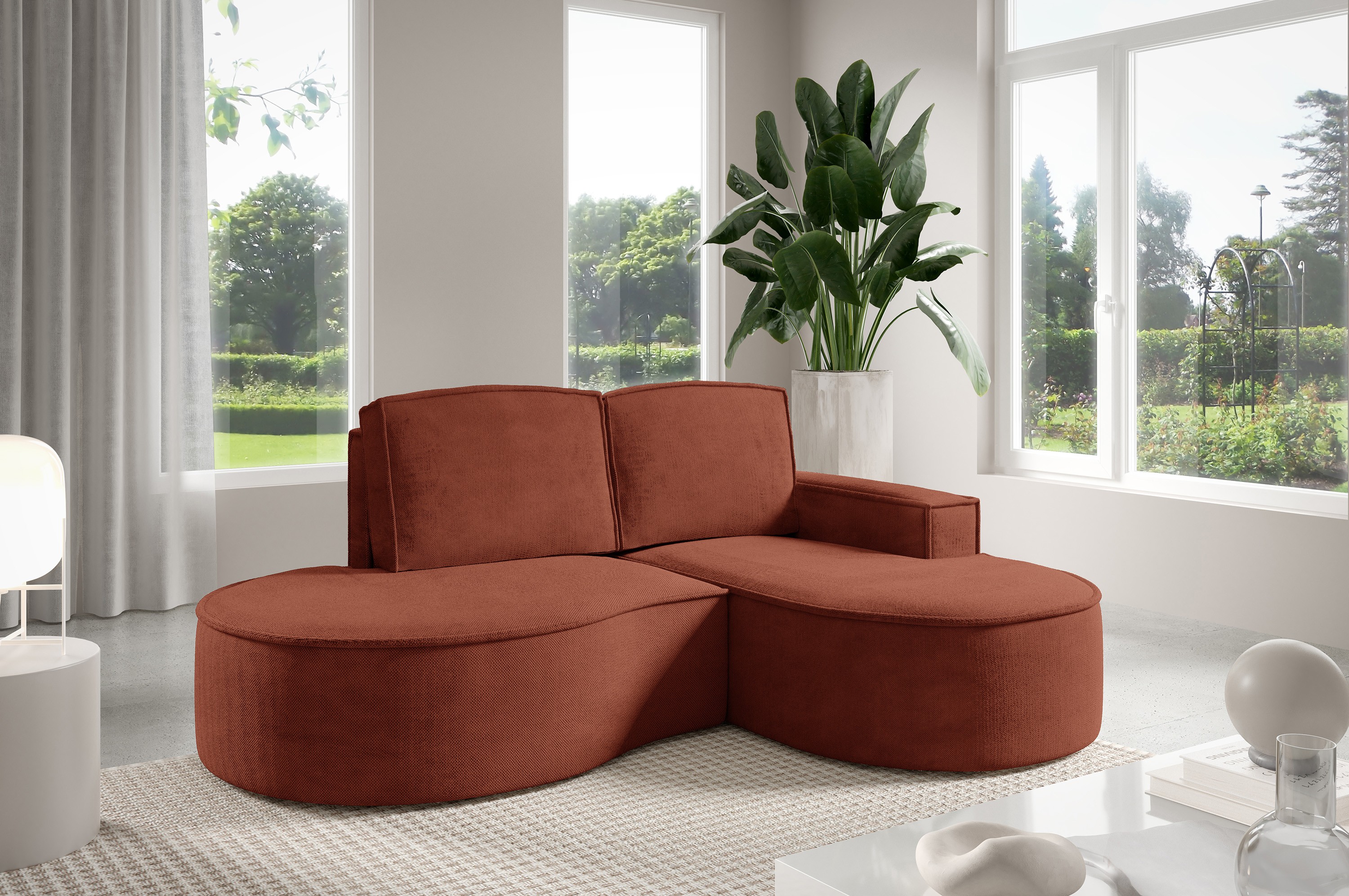 Narożnik MOLLY Prawostronny bez funkcji spania, wolnostojący tkanina CURIO 55 Miedziany
