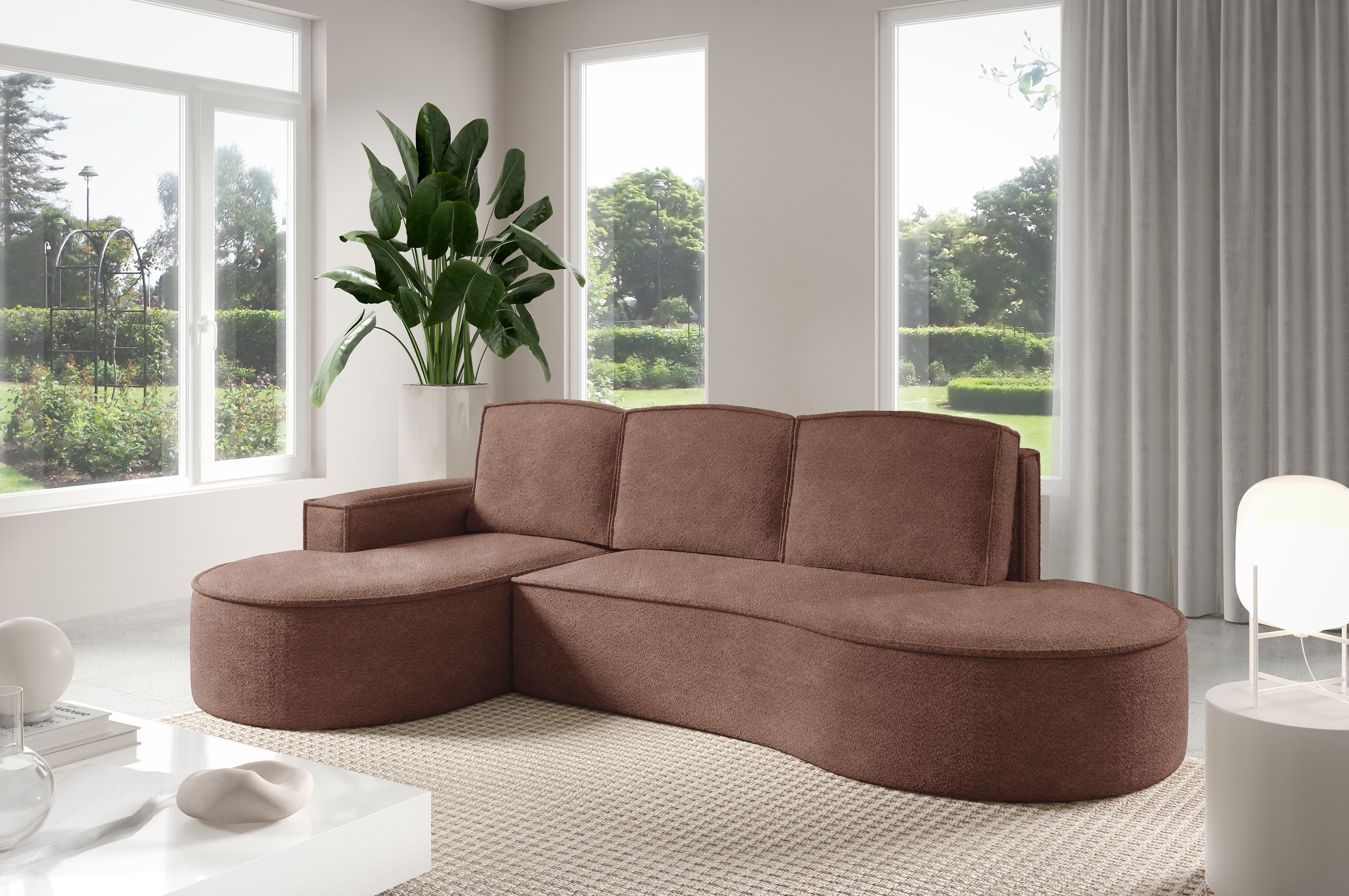 Narożnik MOLLY Lewostronny z funkcją spania, wolnostojący tkanina ABRIAMO 12 Miedziany