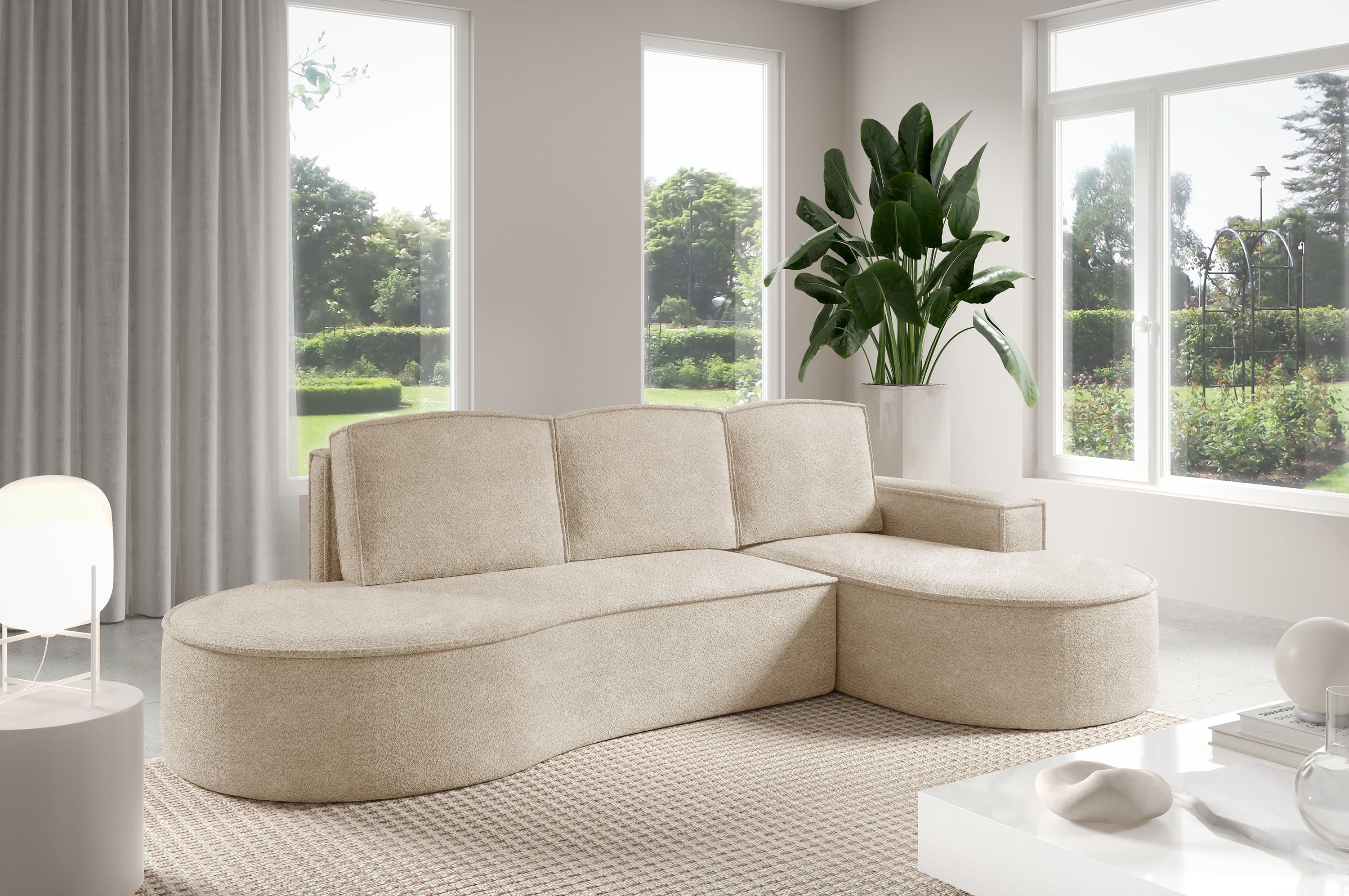 Narożnik MOLLY Prawostronny z funkcją spania, wolnostojący tkanina ABRIAMO 03 Beżowy