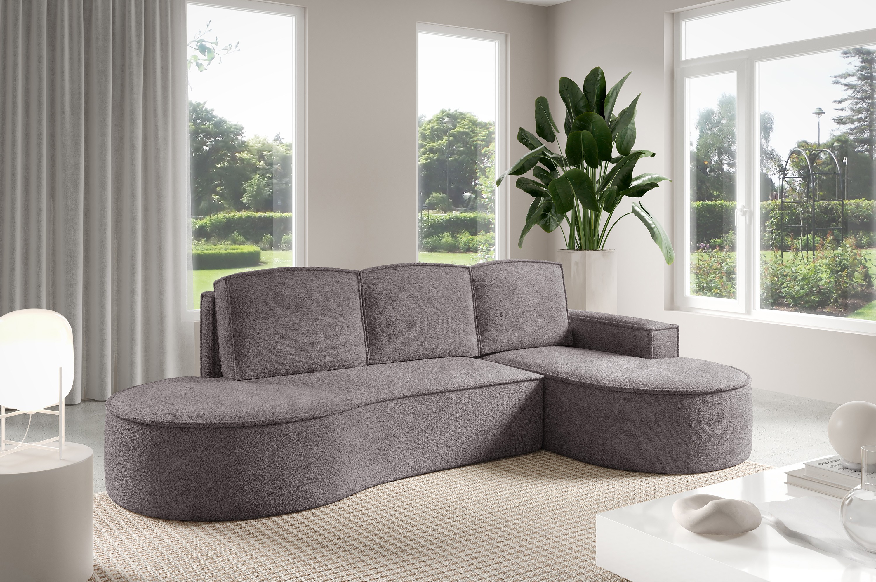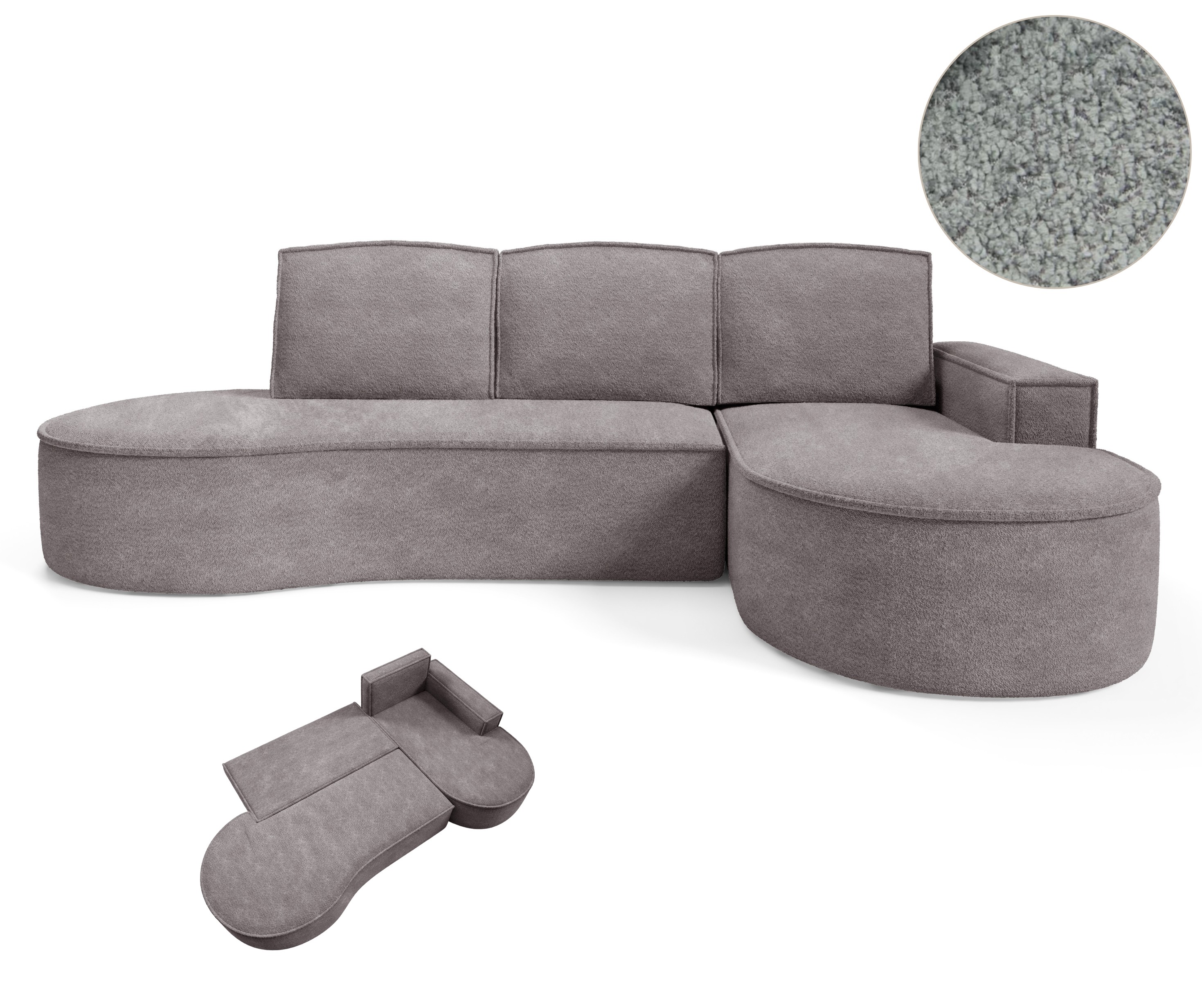 Narożnik MOLLY Prawostronny z funkcją spania, wolnostojący tkanina ABRIAMO 07 Szary