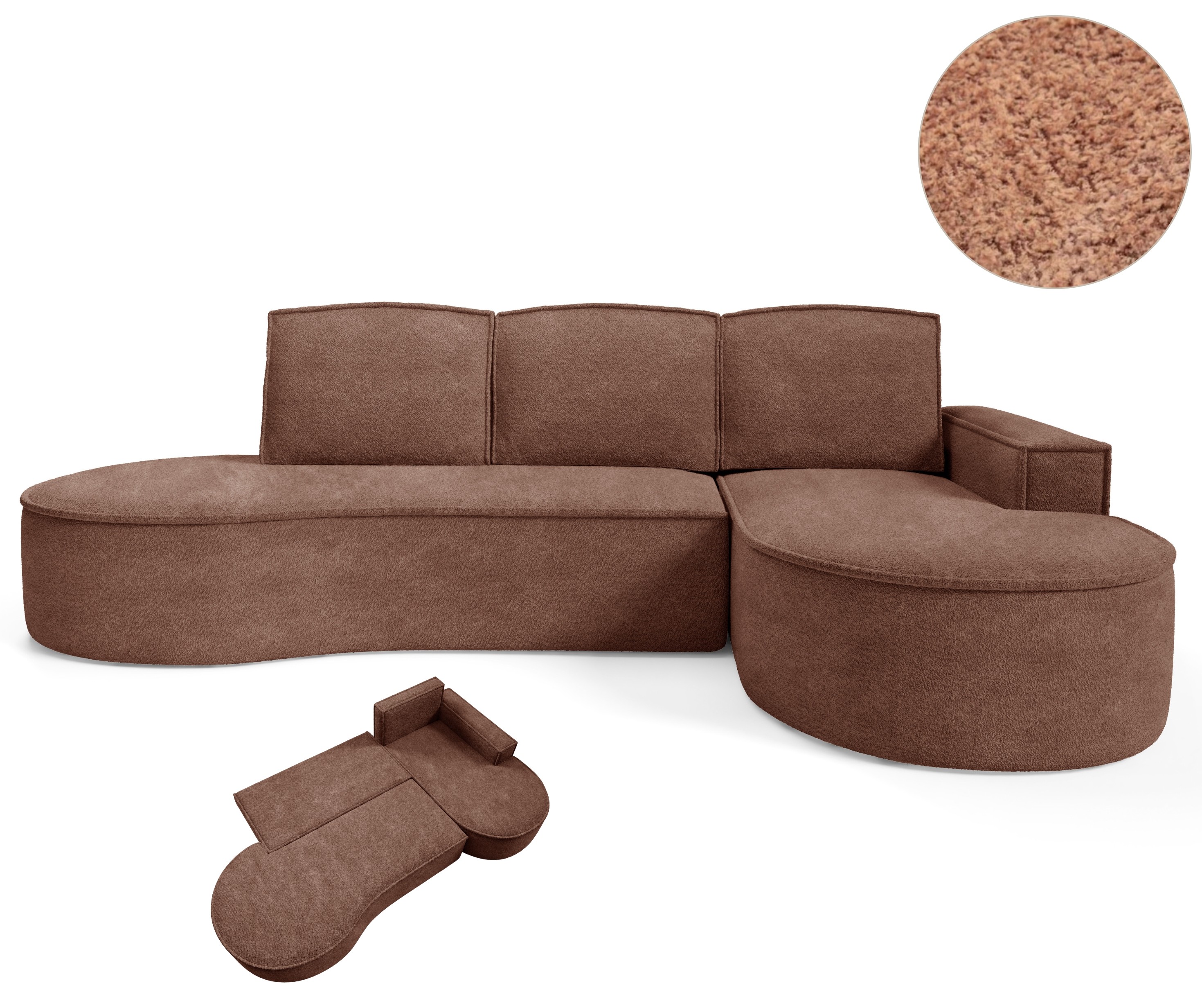 Narożnik MOLLY Prawostronny z funkcją spania, wolnostojący tkanina ABRIAMO 12 Miedziany