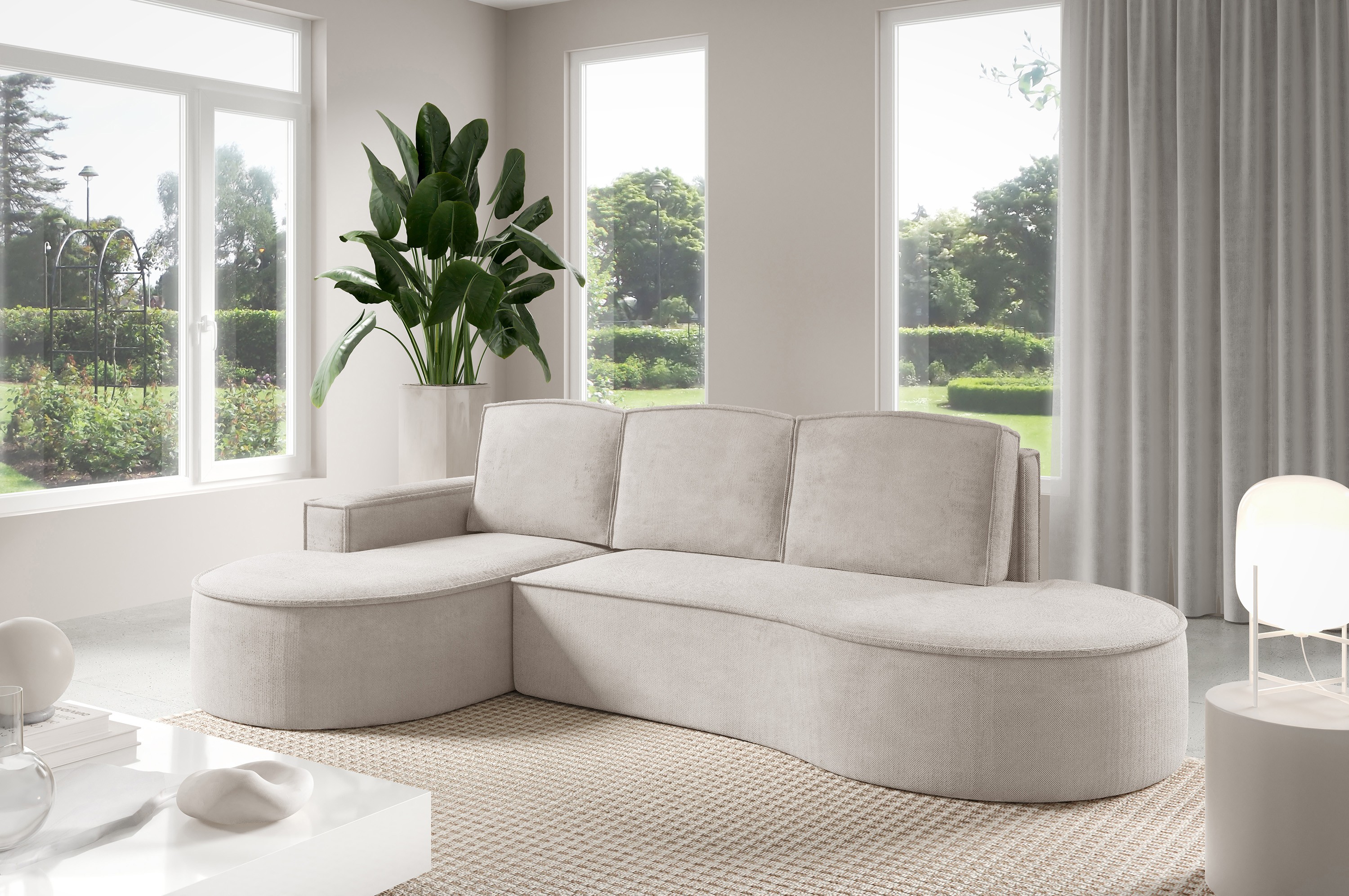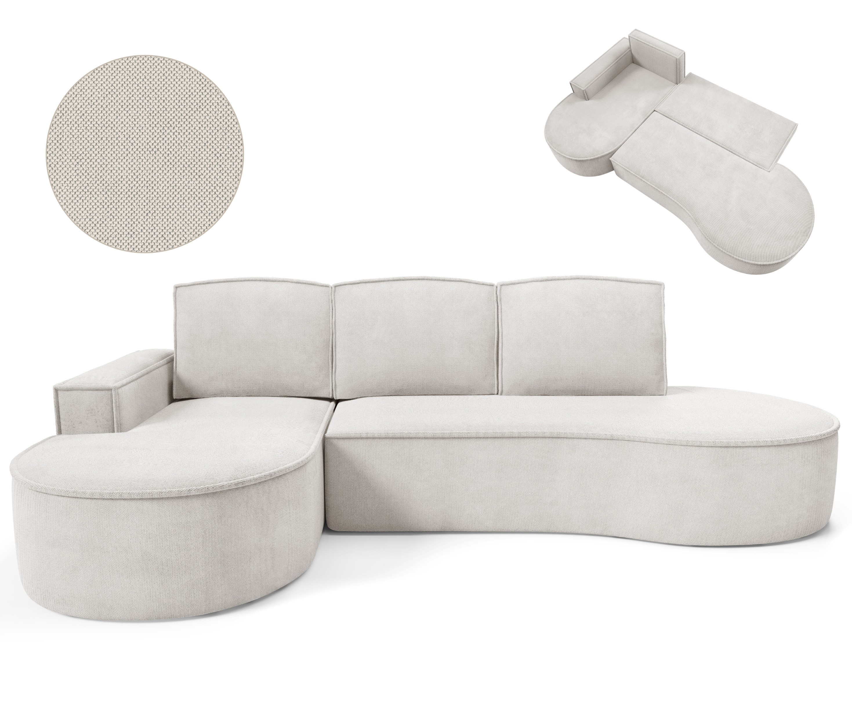 Narożnik MOLLY Lewostronny bez funkcji spania, wolnostojący tkanina CURIO 02 Biały