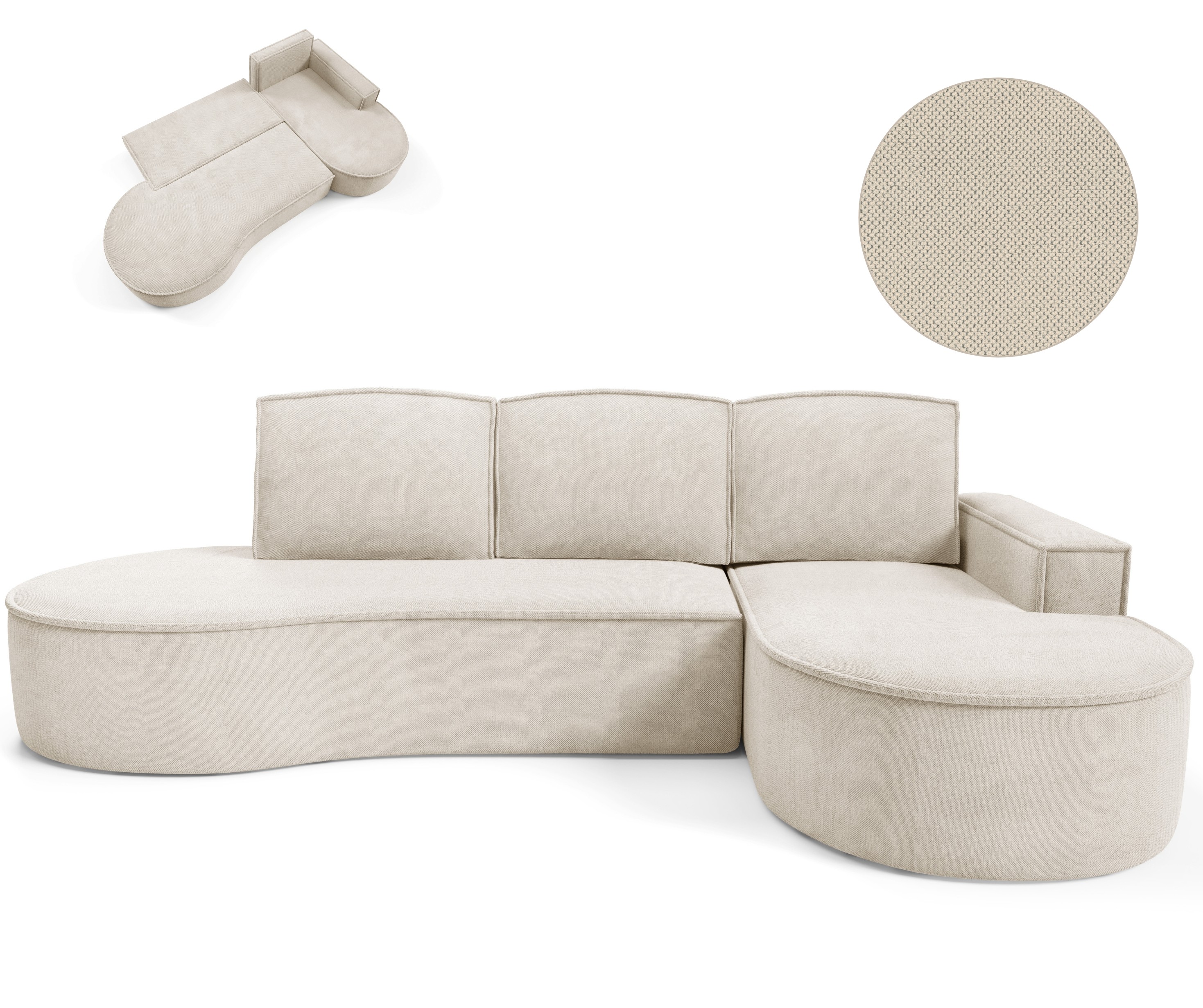 Narożnik MOLLY Prawostronny bez funkcji spania, wolnostojący tkanina CURIO 09 Beżowy