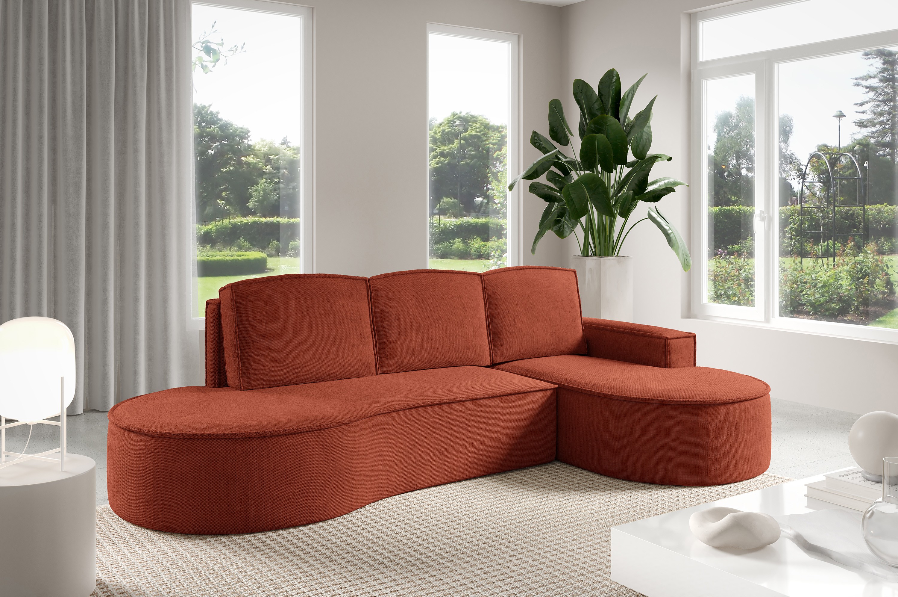 Narożnik MOLLY Prawostronny z funkcją spania, wolnostojący tkanina CURIO 55 Miedziany