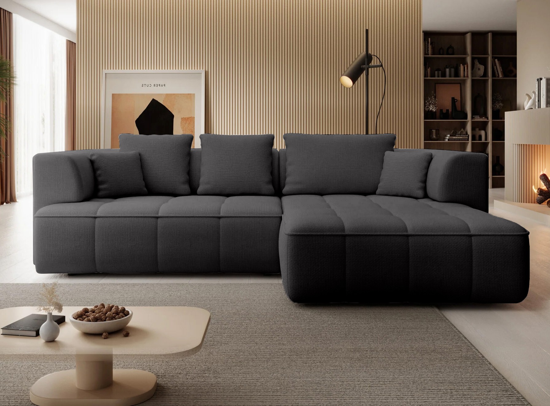 Dzięki szerokiej gamie tkanin i kolorów, narożnik ALBIO z łatwością dopasuje się do Twojej aranżacji, podkreślając indywidualny charakter wnętrza.