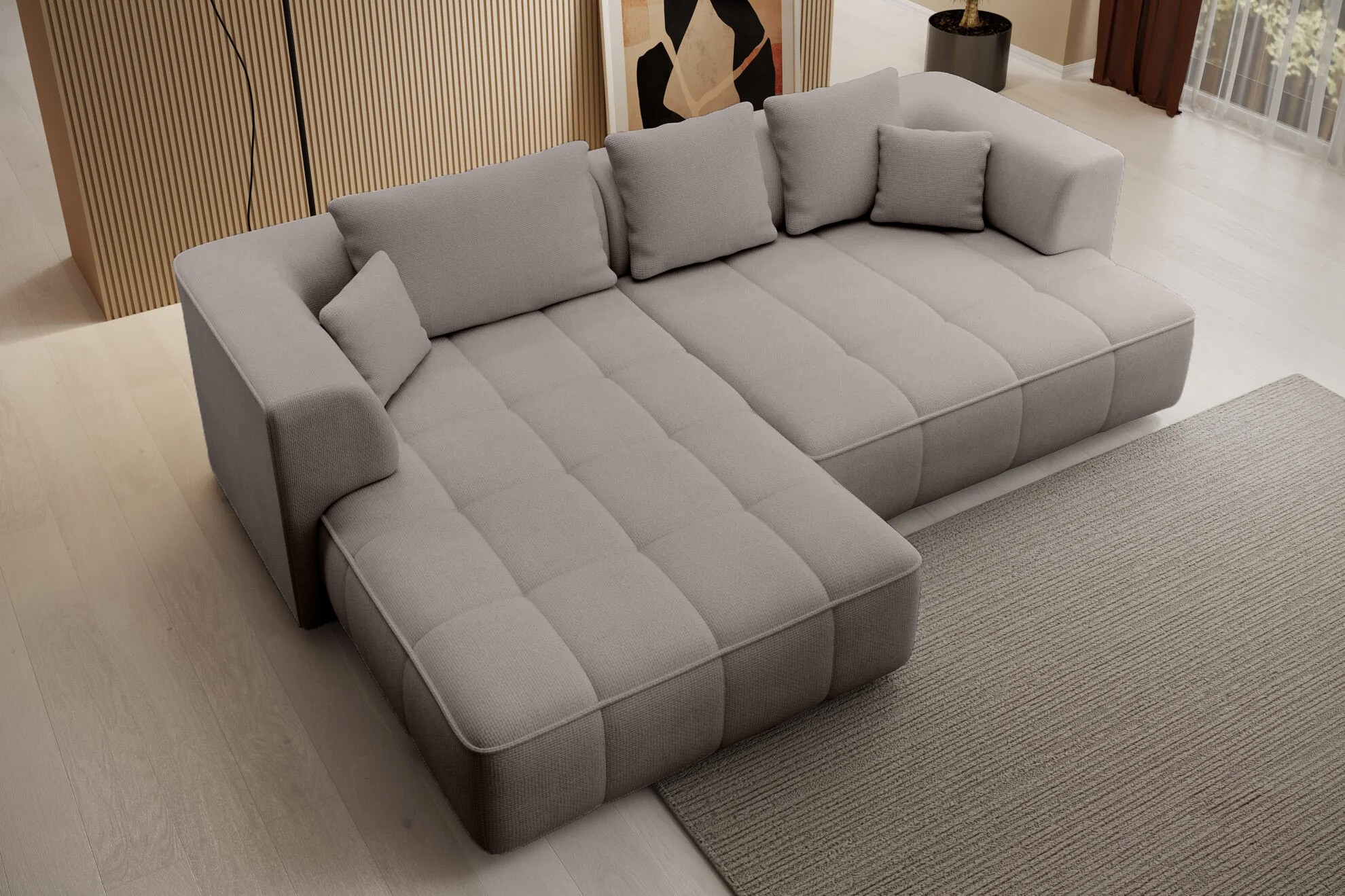 Dzięki szerokiej gamie tkanin i kolorów, narożnik ALBIO z łatwością dopasuje się do Twojej aranżacji, podkreślając indywidualny charakter wnętrza.