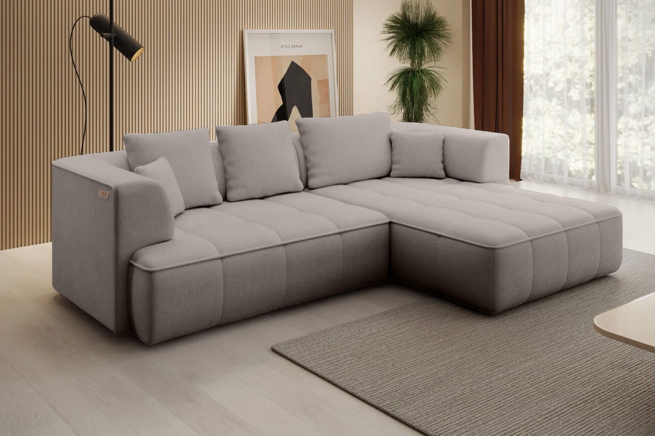 Narożnik ALBIO S Prawostronny z elektryczną regulacją siedziska, funkcja spania, wolnostojący w tkaninie EDEN 02 WERSAL