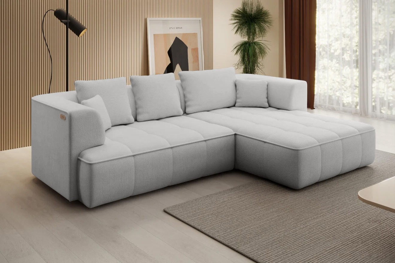 Narożnik ALBIO S Prawostronny z elektryczną regulacją siedziska, funkcja spania, wolnostojący w tkaninie EDEN 02 WERSAL