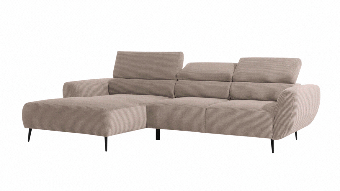Gładkie siedzisko nadaje narożnikowi nowoczesnego charakteru, a wysokie