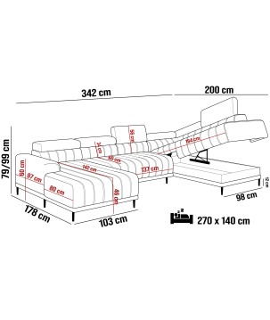 Narożnik CALDO XL Lewostronny z funkcją spania wolnostojąca w tkaninie RUN AGAIN 18 WERSAL