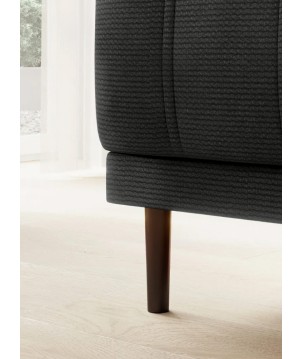 Pikowane siedzisko nadaje narożnikowi nowoczesnego charakteru, a wysokie metalowe nóżki w stylu loftowym dodają mu lekkości i elegancji.