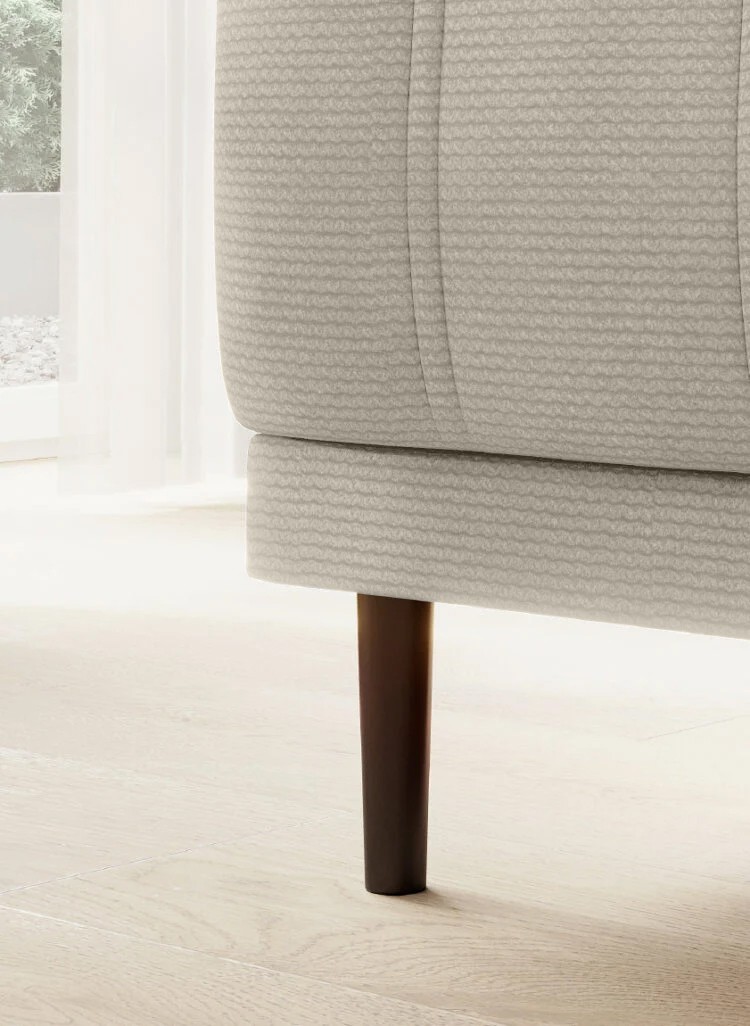 Pikowane siedzisko nadaje narożnikowi nowoczesnego charakteru, a wysokie metalowe nóżki w stylu loftowym dodają mu lekkości i elegancji.