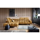 Stylowe pikowane siedzisko i wysokie metalowe nóżki (dostępne w kolorze czarnym lub złotym) nadają narożnikowi lekko loftowy, a jednocześnie nowoczesny charakter.