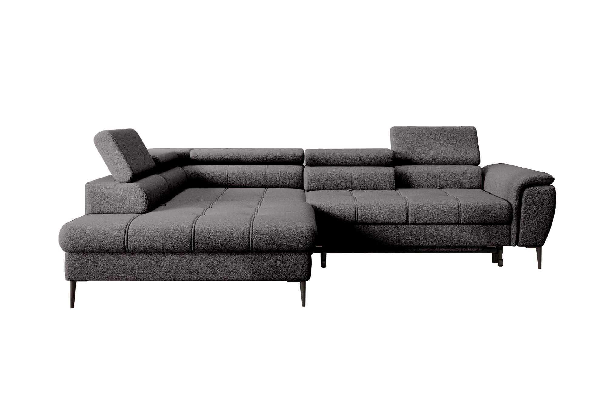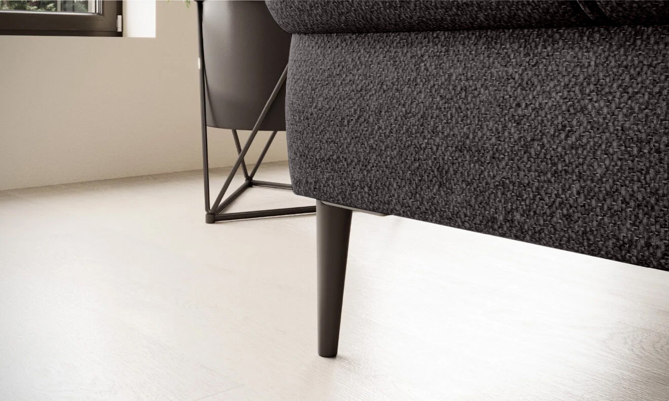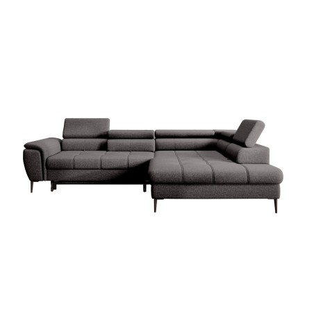 Stylowe pikowane siedzisko i wysokie metalowe nóżki (dostępne w kolorze czarnym lub złotym) nadają narożnikowi lekko loftowy, a jednocześnie nowoczesny charakter.