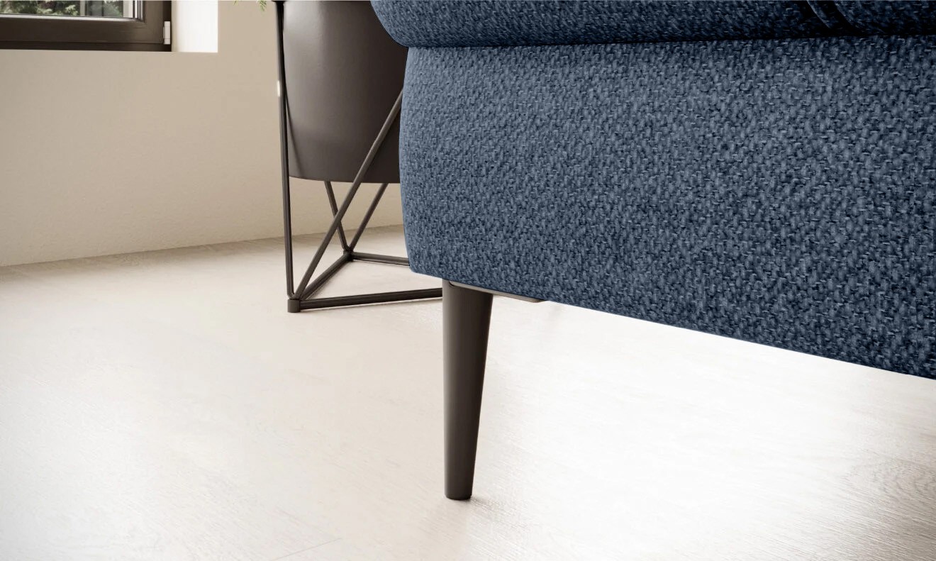 Stylowe pikowane siedzisko i wysokie metalowe nóżki (dostępne w kolorze czarnym lub złotym) nadają narożnikowi lekko loftowy, a jednocześnie nowoczesny charakter.