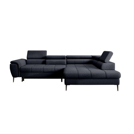 Stylowe pikowane siedzisko i wysokie metalowe nóżki (dostępne w kolorze czarnym lub złotym) nadają narożnikowi lekko loftowy, a jednocześnie nowoczesny charakter.