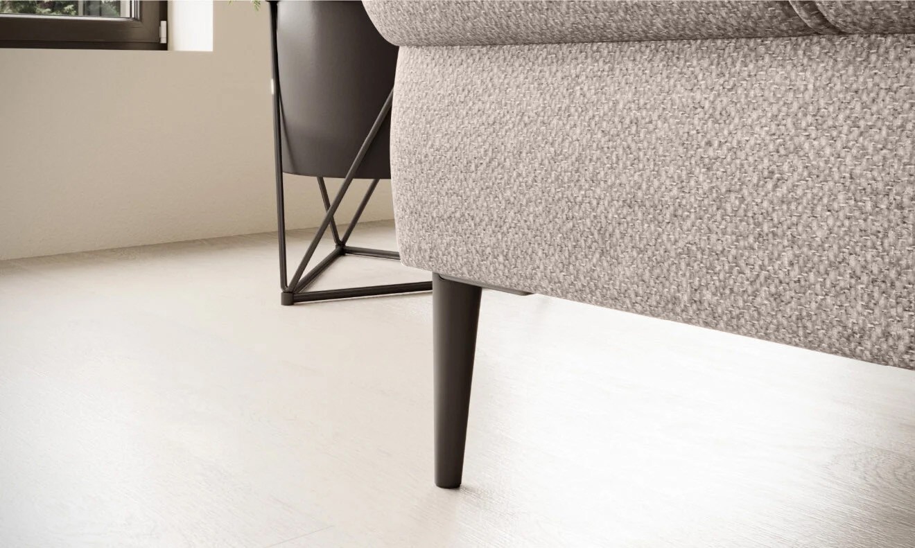 Stylowe pikowane siedzisko i wysokie metalowe nóżki (dostępne w kolorze czarnym lub złotym) nadają narożnikowi lekko loftowy, a jednocześnie nowoczesny charakter.
