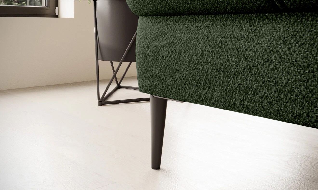 Stylowe pikowane siedzisko i wysokie metalowe nóżki (dostępne w kolorze czarnym lub złotym) nadają narożnikowi lekko loftowy, a jednocześnie nowoczesny charakter.