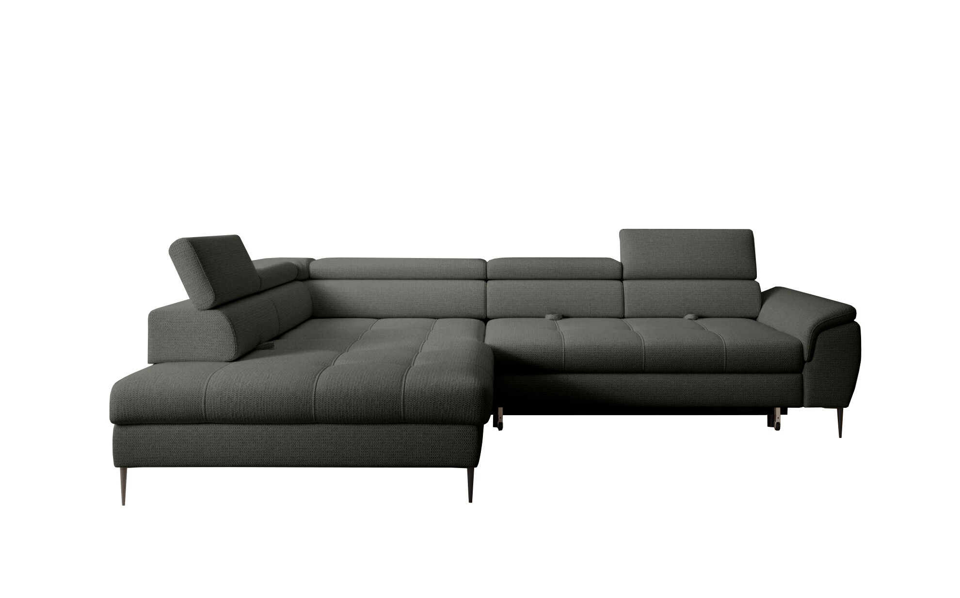 Dodatkowo narożnik wyposażony jest w przesuwne oparcie oraz regulowane zagłówki, które można zablokować w wybranej pozycji, zapewniając jeszcze większy komfort.