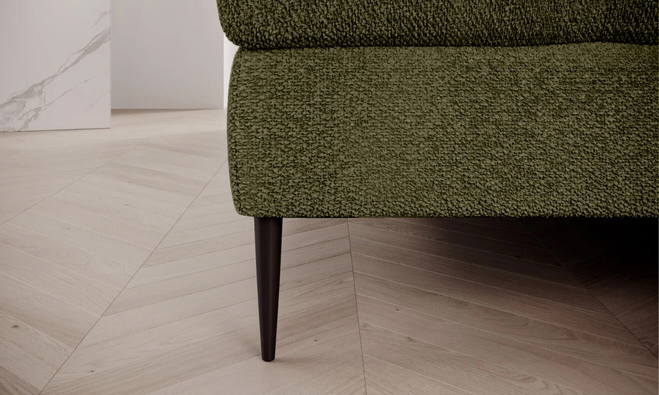 Stylowe pikowane siedzisko i wysokie metalowe nóżki nadają narożnikowi lekko loftowy, a jednocześnie nowoczesny charakter.