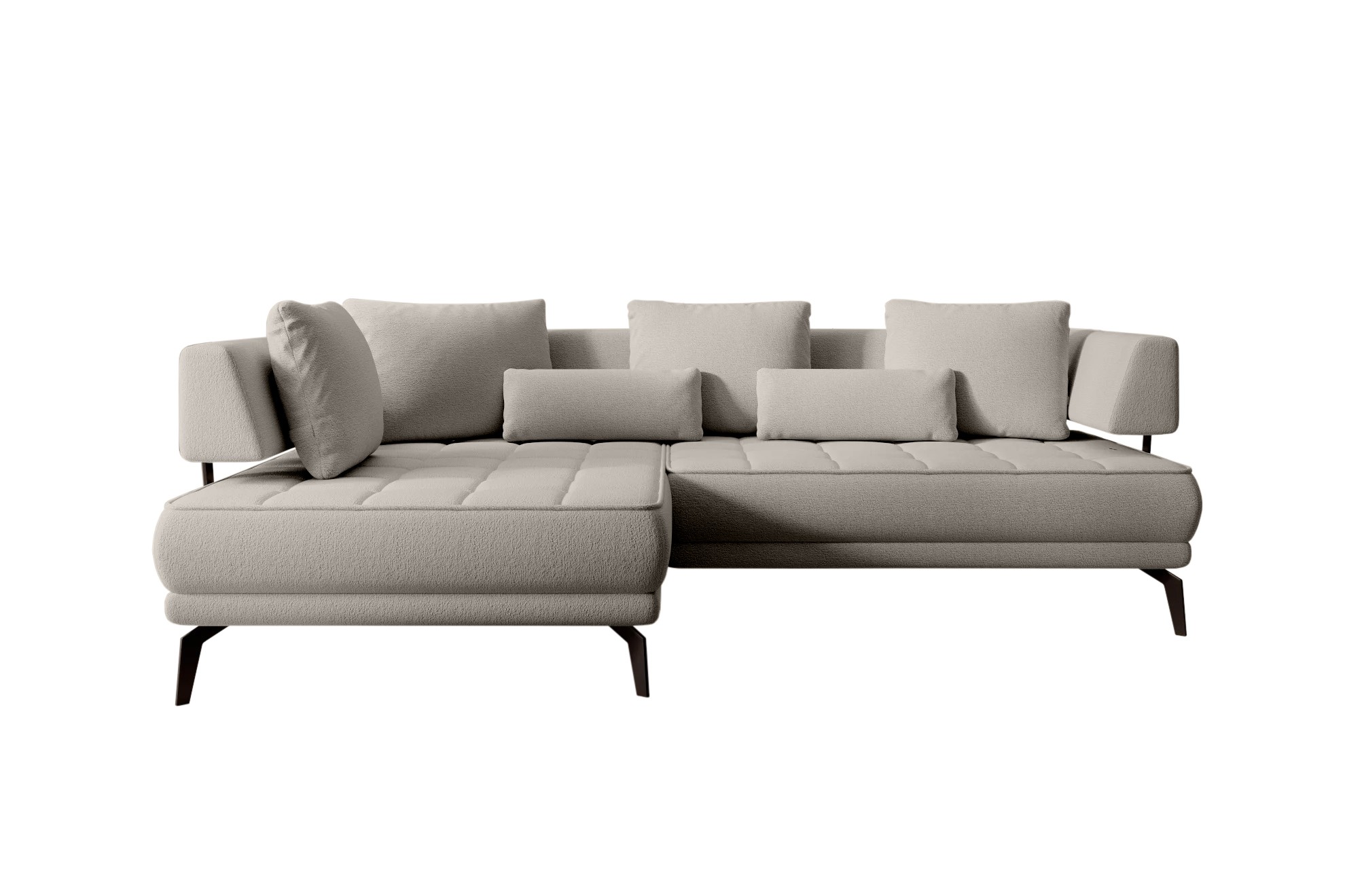 Stylowe pikowane siedzisko i wysokie metalowe nóżki nadają narożnikowi lekko loftowy, a jednocześnie nowoczesny charakter.